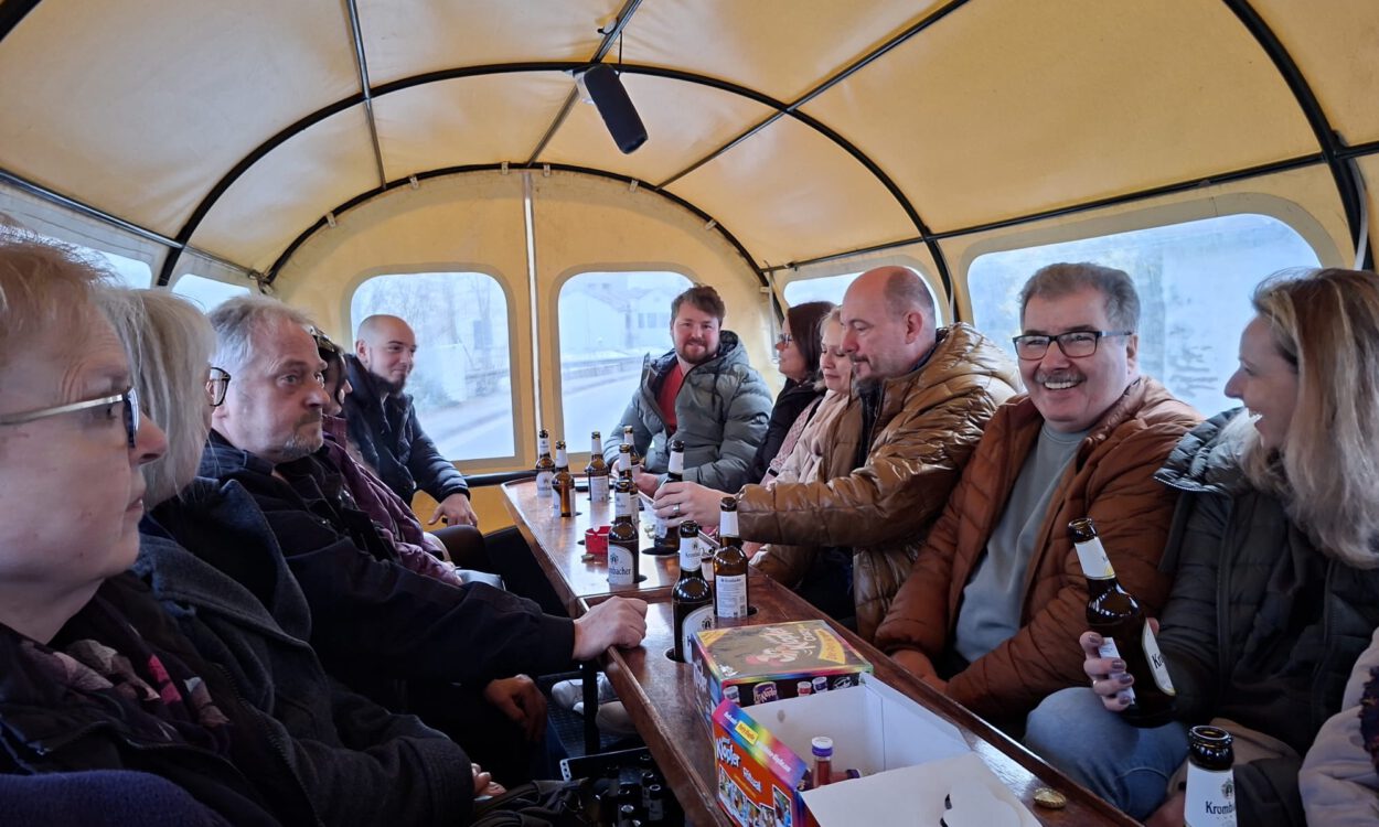 Altena. Planwagenfahrt, alte Fotos, traditionelles Binden, Tante Gertrut und ein Betonmischer: Zug 1 der Kompanie Mühlendorf hat am Samstag einen besonderen Kränzebinder-Abend veranstaltet.