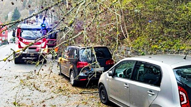 Altena. Ein umgestürzter Baum hat am Dienstagmorgen in der oberen Nette zwei Autos getroffen und einen Einsatz der Feuerwehr ausgelöst.