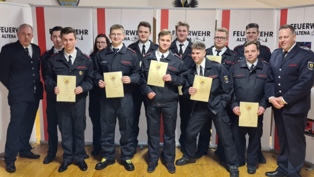 Altena. Über eine „rappelvolle“ Dahler Schützenhalle hat sich am Samstagabend (10. Februar 2024) Alexander Grass während der Jahresdienstbesprechung der Feuerwehr Altena gefreut. Der Feuerwehr-Chef bedankte sich im Besonderen bei seinen engagierten Kameradinnen und Kameraden, die im vergangenen Jahr im Dienste der Sicherheit mehr als 500 Einsätze erfolgreich durchgeführt haben.