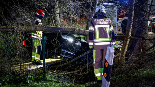 Schwerer Unfall in Iserlohn: Auto landet zwischen Bäumen im Bachbett