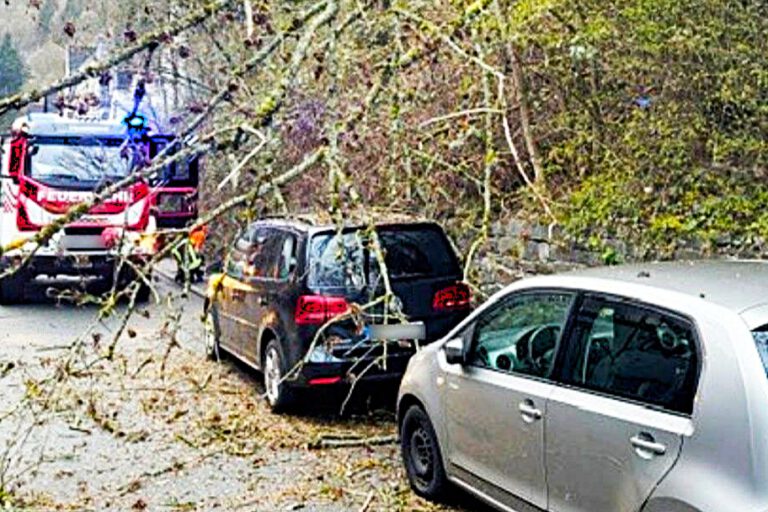 Altena. Ein umgestürzter Baum hat am Dienstagmorgen in der oberen Nette zwei Autos getroffen und einen Einsatz der Feuerwehr ausgelöst.
