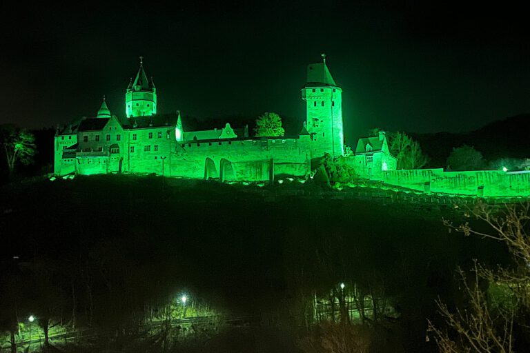 Altena/Märkischer Kreis. Zum St. Patrick’s Day, dem irischen Nationalfeiertag, leuchtete die Burg Altena eine ganze Nacht in grün.