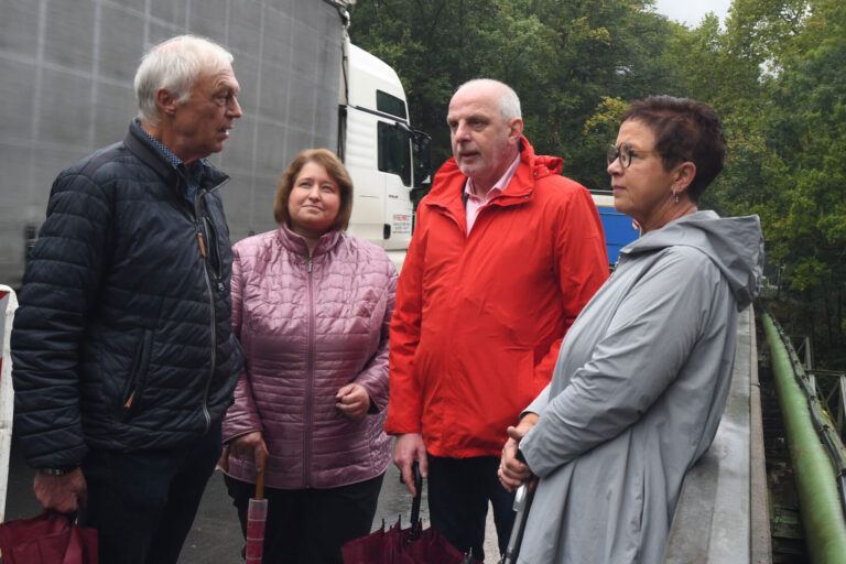 Bundespolitiker Müller (SPD) besichtigt marode Lennebrücke in Nachrodt