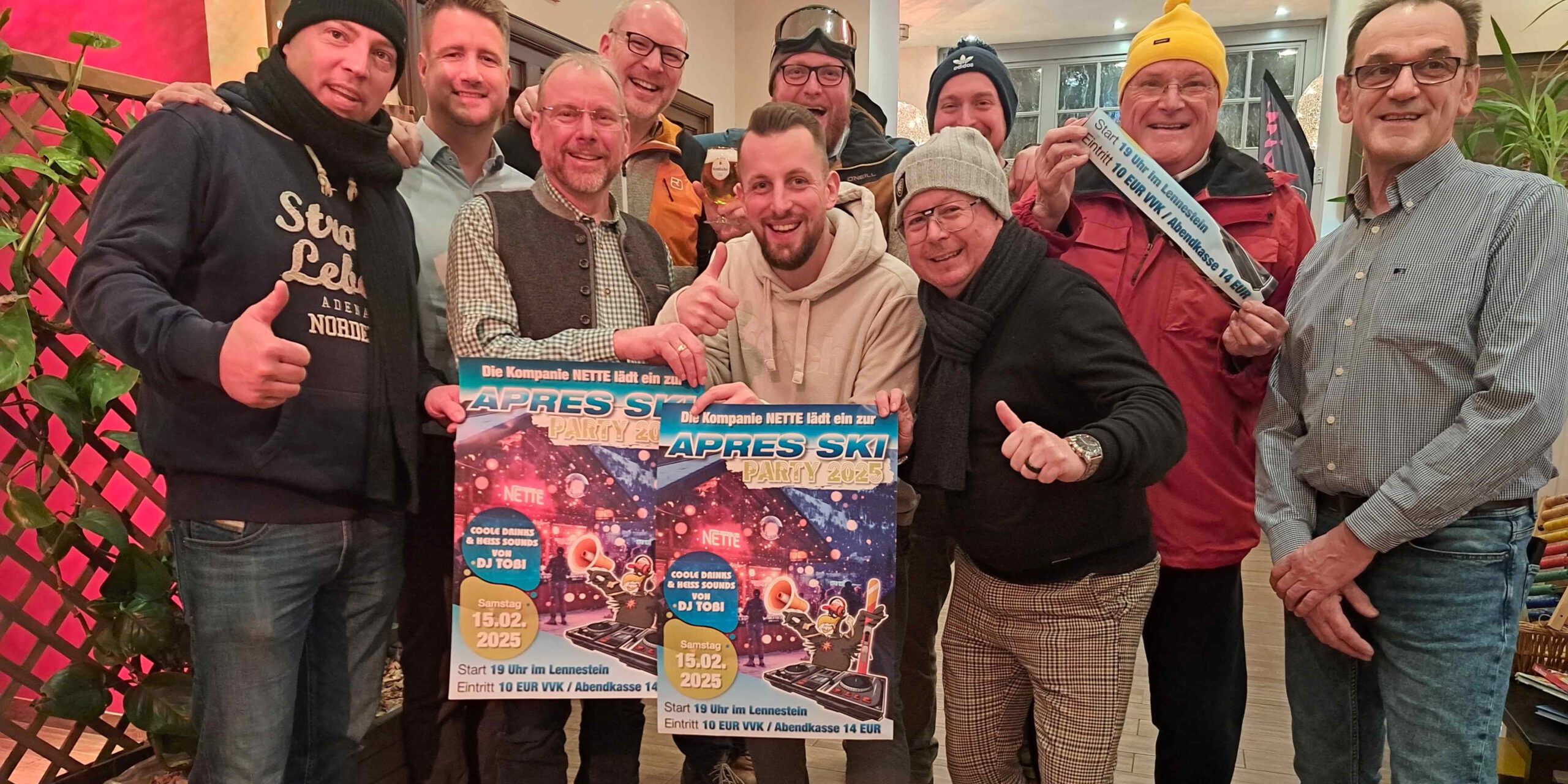 Die Après-Ski-Party der Kompanie Nette hat sich in Altena längst etabliert. Damit sie ein besonderes Event bleibt, findet sie zukünftig im 3-Jahres-Turnus statt – die nächste demnach erst 2028 gefeiert. „Es stehen so viele Feste an und wir möchten auch nicht, dass unser Event an Attraktivität verliert“, so die Begründung von Oliver Tank.
