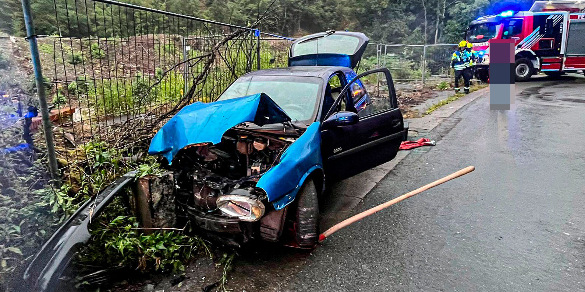 Der Alleinunfall ereignete sich gegen 20.30 Uhr auf der Rahmedestraße in der scharfen Claas-Kurve. Der Fahrer, der in Richtung Stadtmitte unterwegs war, kam laut Polizei auf Grund der Witterungsverhältnisse – die Straße war regennass – mit seinem Kleinwagen nach rechts von der Fahrbahn ab und prallte in Höhe einer ehemaligen Werkseinfahrt frontal gegen einen Pfeiler, der am Straßenrand steht.