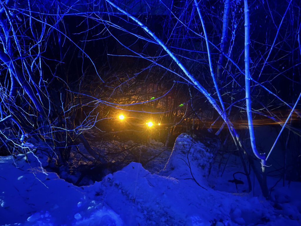 Ohne Licht war in der Dunkelheit nur das Warnblinken von dem Wagen in der Böschung zu sehen. Foto: Carsten Menzel
