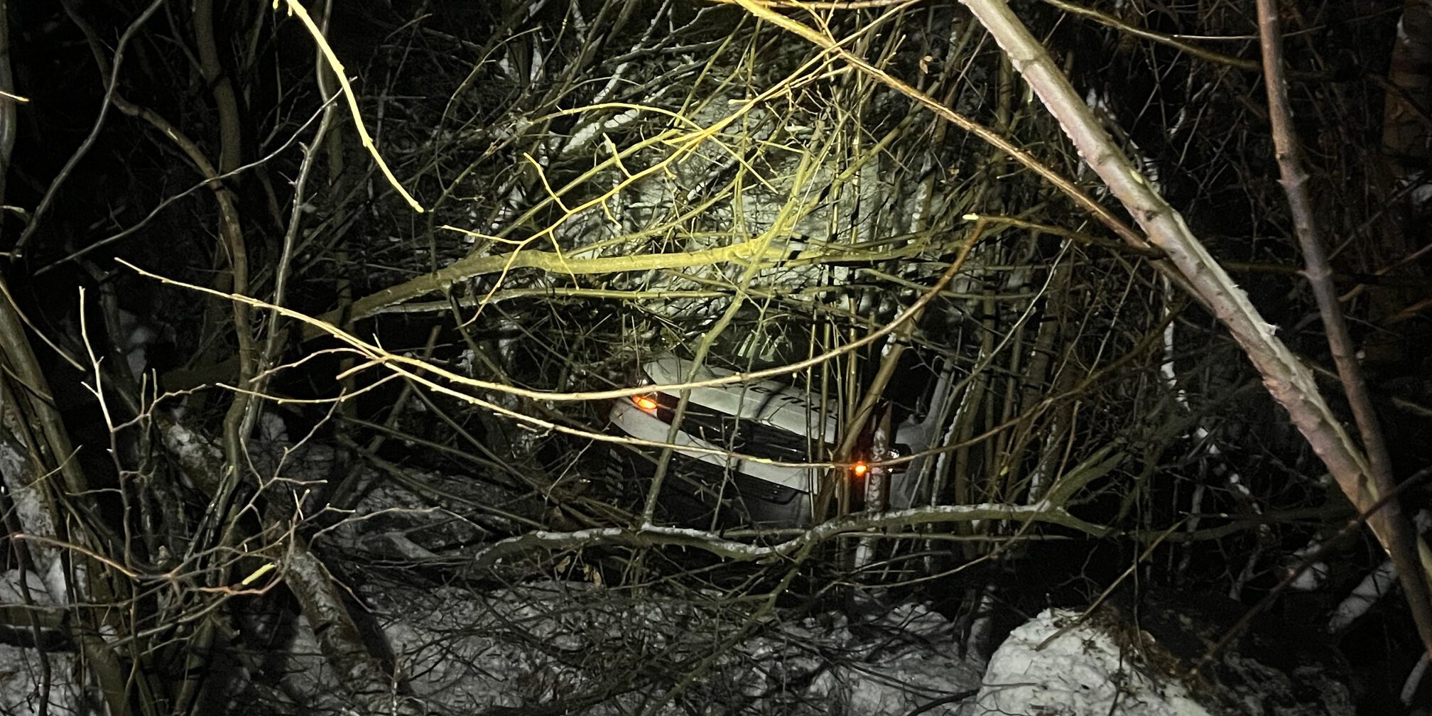 Ohne Licht war in der Dunkelheit nur das Warnblinken von dem Wagen in der Böschung zu sehen. Foto: Carsten Menzel