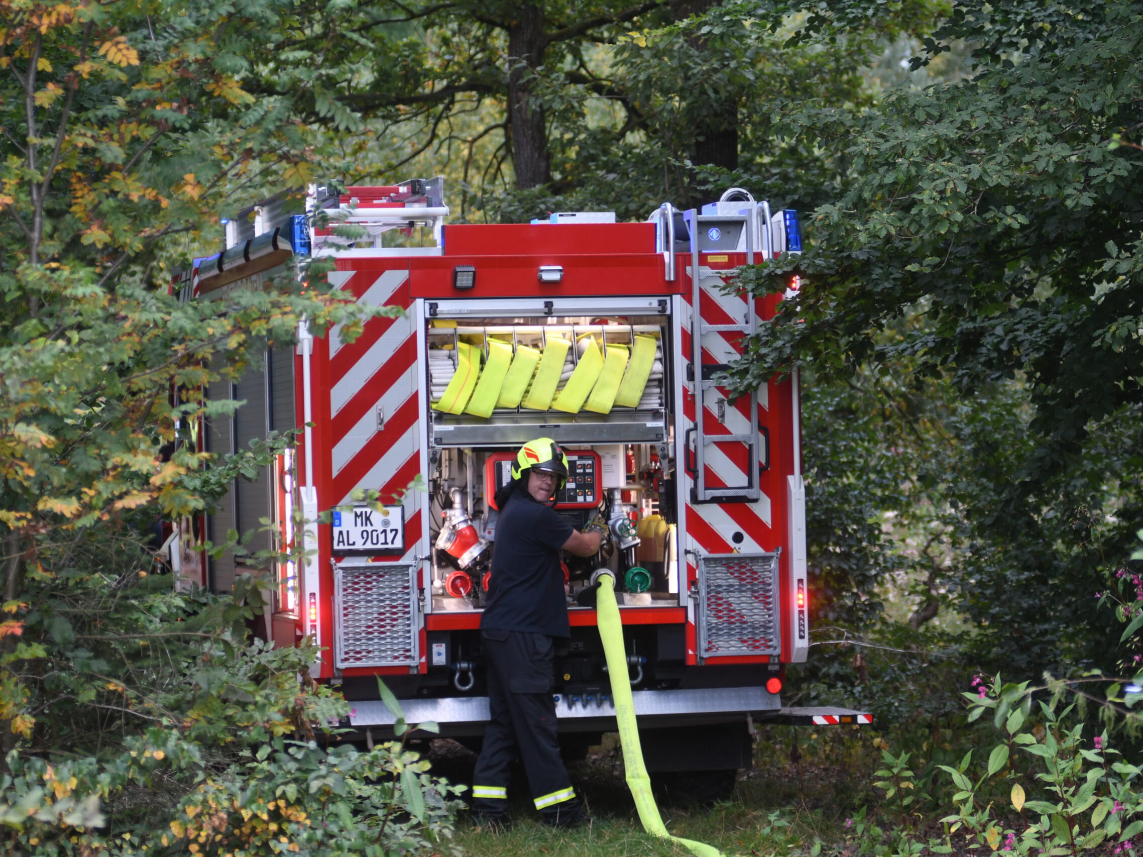 Was begann, ging in Richtung Materialschlacht. Meter für Meter schleppten die Feuerwehrleute – als erste die Einheiten vom Löschzug III (Rahmedetal, Drescheid, Rosmart) – Schlauch um Schlauch. Einen Hydranten gab es weit und breit nicht, so dass Einsatzleiter Björn Karnbach aus der Löschgruppe Dahle und Zugführer vom Löschzug II die Feuerwehrfahrzeuge mit großen Tanks in einem Kreisverkehr einsetzte und das Löschwasser zur Einsatzstelle transportieren ließ. Dabei ging es für die großen Wagen teils über schmale, unebene Wege, die nicht mehr als ein Wanderpfad waren.