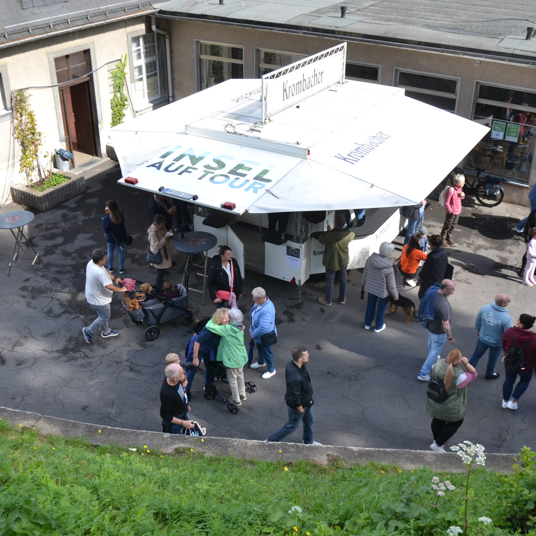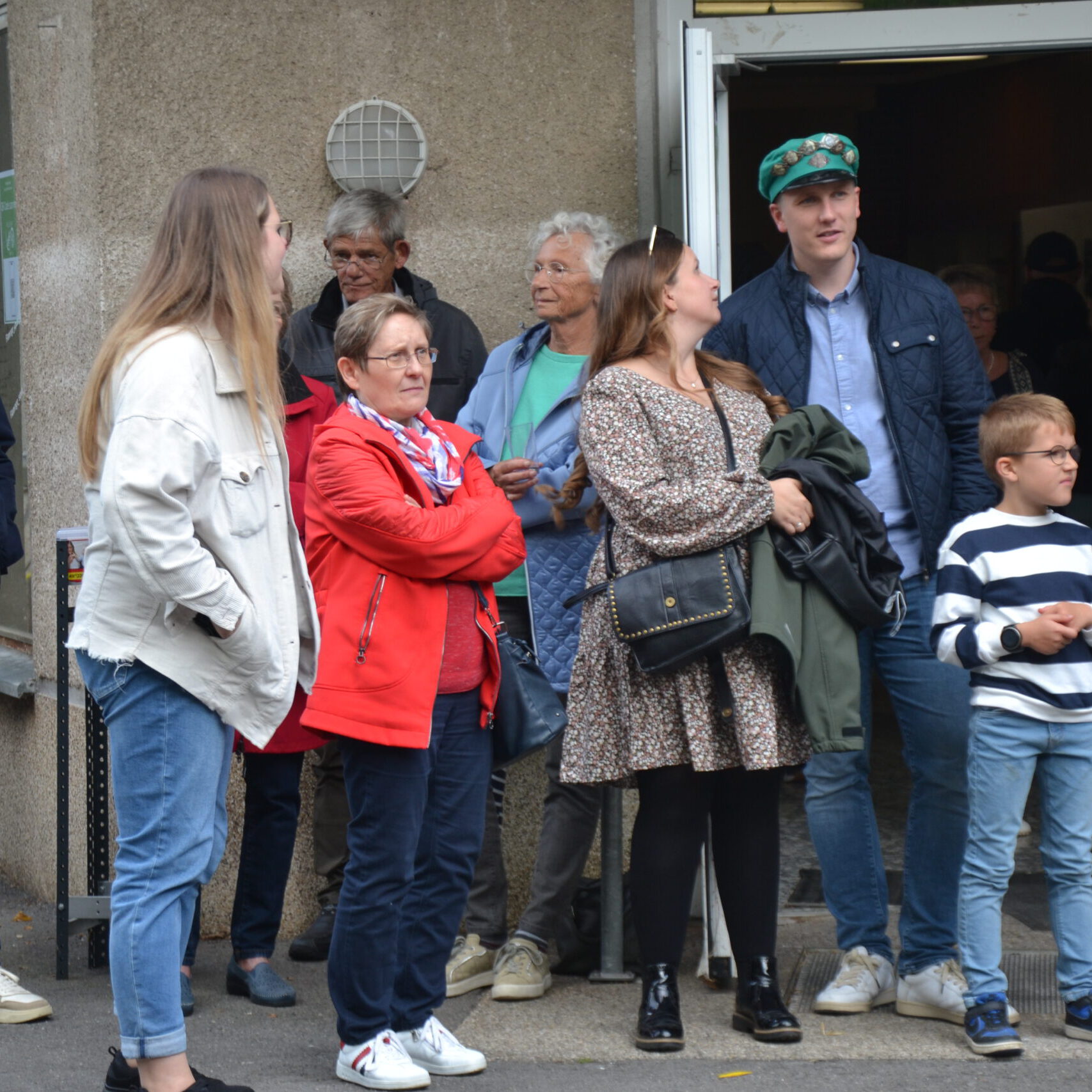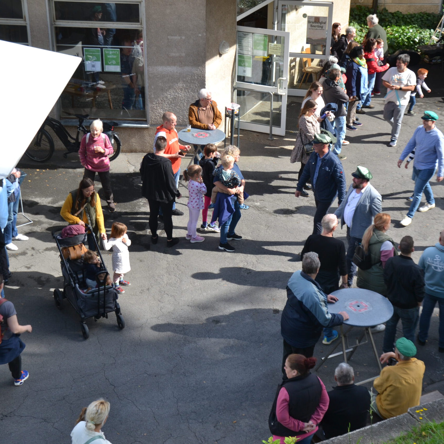 Besonders gut angenommen wurden die Führungen durch die Siedlung. Unter der Leitung von Christian Klimpel und Kornelia Schneider erkundeten viele Interessierte die Geschichte und Besonderheiten des Knerling – mit offenem Ohr und echtem Interesse. Es entstanden lebhafte Gespräche, viele alte Geschichten wurden geteilt. Ein Highlight war der Abend: Ab etwa 20:30 Uhr wurden denkmalgeschützte Teile des Stadtteils illuminiert und sorgten für magische Ausblicke. Die Beleuchtung verlieh dem Knerling eine stimmungsvolle Atmosphäre, die den Tag angemessen ausklingen ließ.