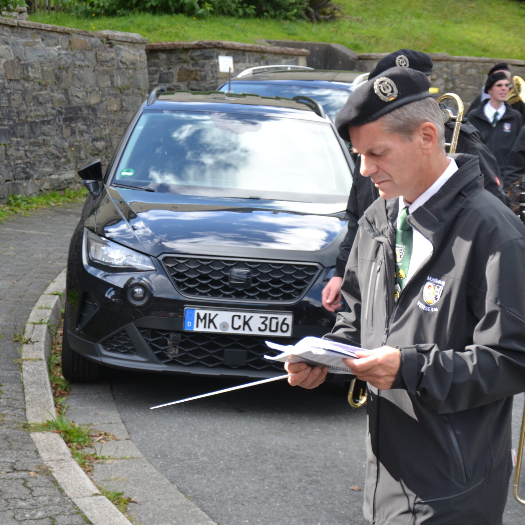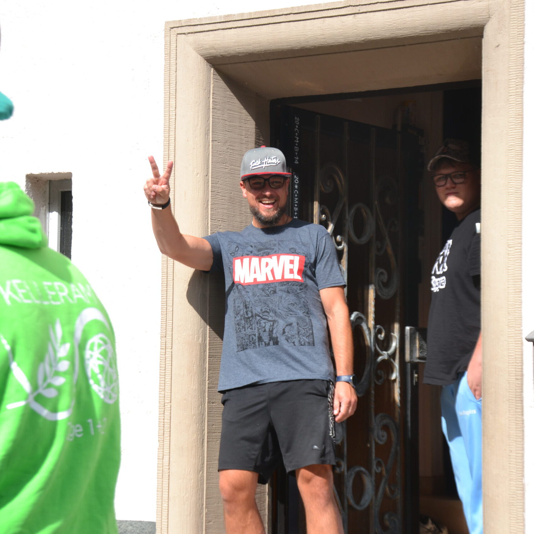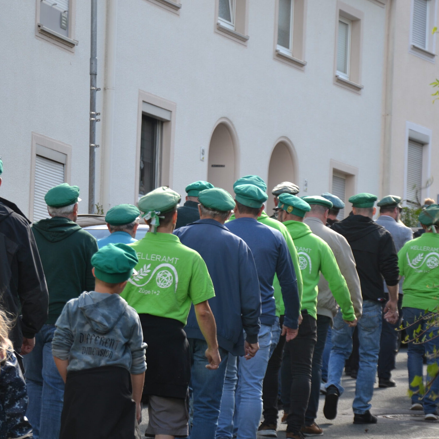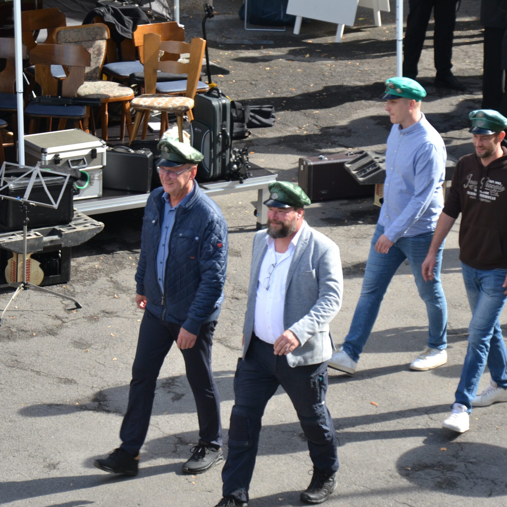 Los ging es am Treffpunkt Knerling-Kreisel – genauer gesagt an der ehemaligen Garage von Klaus Löttgers, dem Begründer des ursprünglichen Brunnenfestes. Heute wird der Ort liebevoll „die kleine Kneipe“ genannt und dient für die Schützen der Kompanie Kelleramt immer als geselliger Startpunkt. Dort sammelten sie sich am Samstag auch, um sich bei einem kleinen Bier auf den bevorstehenden Festmarsch einzustimmen.