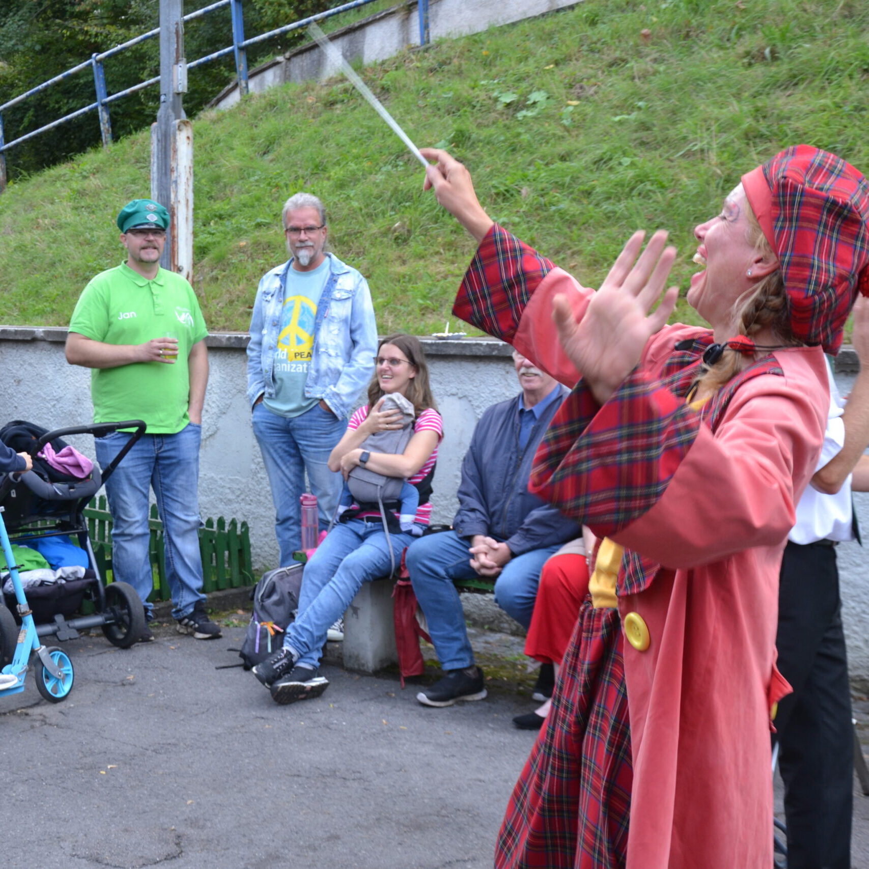 Das Brunnenfest war ein Fest für die ganze Familie. So hatten Kinder und Erwachsene großen Spaß mit Clownin Trine.