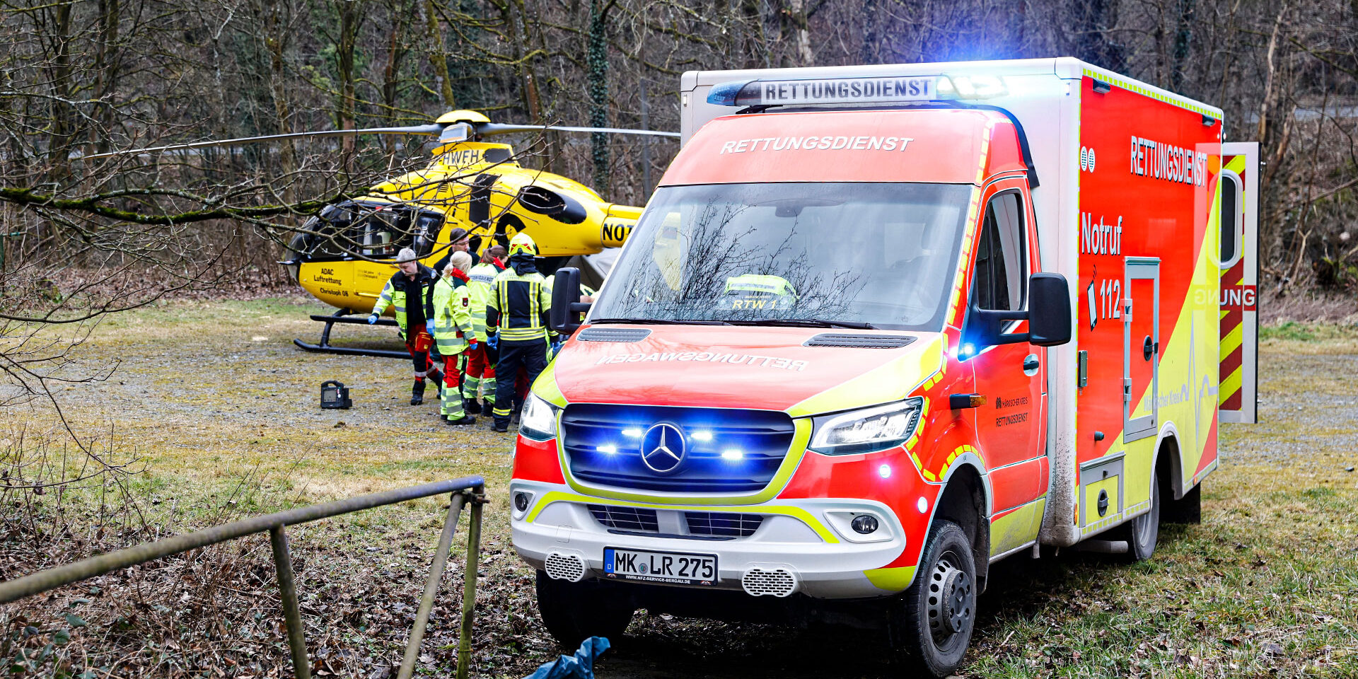 Wegen der Verletzungen wurde der Rettungshubschrauber „Christoph 8“ der ADAC-Luftrettung aus Lünen nach Altena alarmiert. Dabei bewies der Pilot sein Können und nutzte eine kleine Freifläche zwischen Bäumen und Firmenhalle unmittelbar neben dem Unfallort als Landeplatz.