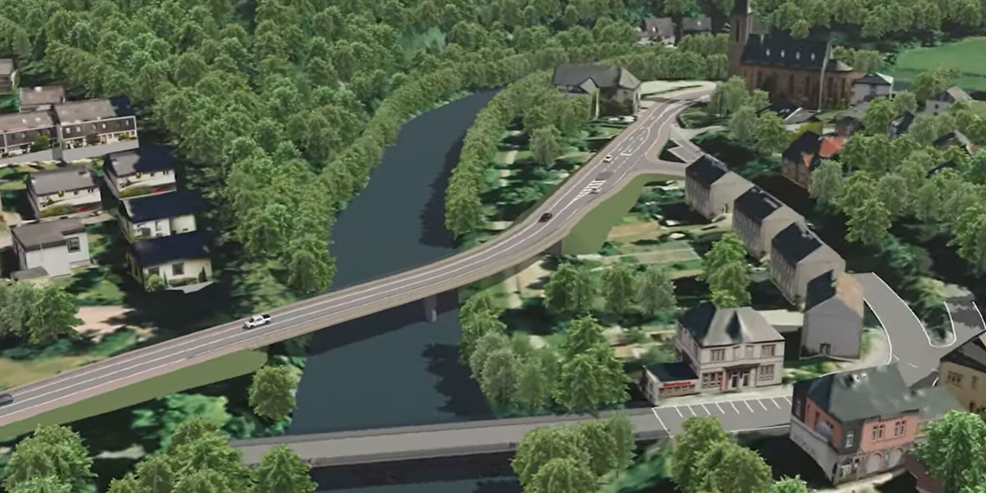 Geplant ist eine neue Trassenlage, bedingt durch die neu zu bauende Brücke, um die verkehrliche Situation im Bereich der Ehrenmalstraße und der Sparkasse (Beseitigung der unübersichtlichen 90 Grad Kurve) zu verbessern. Weiterhin soll durch die beidseitig geplanten neuen getrennten Rad- und Gehwege, die Anlage von drei zusätzlichen Querungshilfen sowie die Neuplanung der Bushaltestelle eine höhere Verkehrssicherheit für alle Verkehrsteilnehmer erreicht werden.