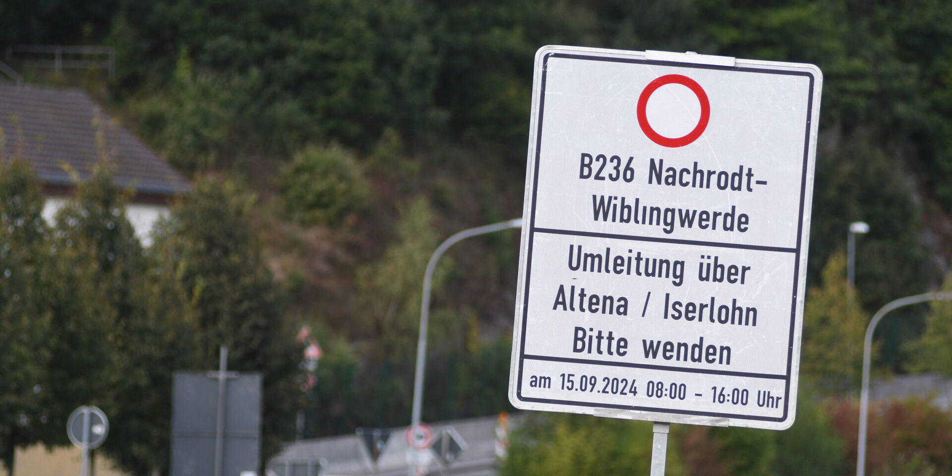 Altena/Nachrodt-Wiblingwerde. Die Teilung in Nord- und Süd-Nachrodt kam zurück – wenn auch nur für wenige Stunden: Die B 236 (Hagener Straße) ist am Sonntag (15. September) für mehrere Stunden in der Ortsdurchfahrt in Nachrodt voll gesperrt gewesen. Der Grund sind Arbeiten an der Lennebrücke.