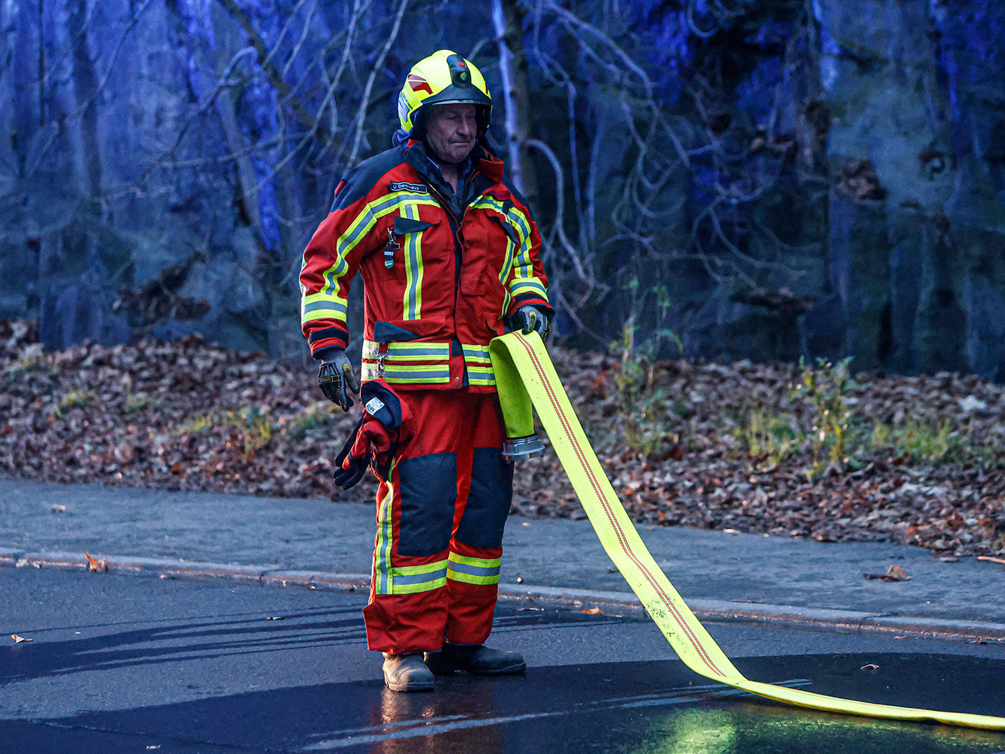Die Nachlöscharbeiten haben die Feuerwache und die Löschgruppe Rosmart der Freiwilligen Feuerwehr übernommen. Wie bereits gestern während des Einsatzes ist die Werdohler Straße dafür voll gesperrt zwischen Abzweig Winkelsen und Buchholz.