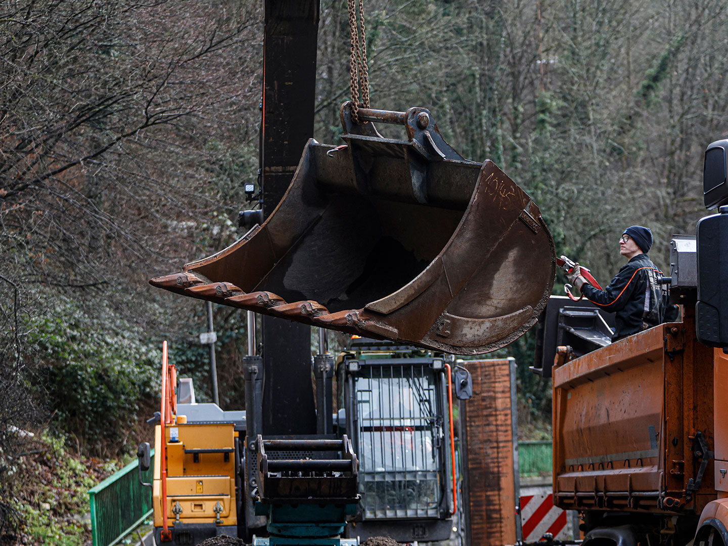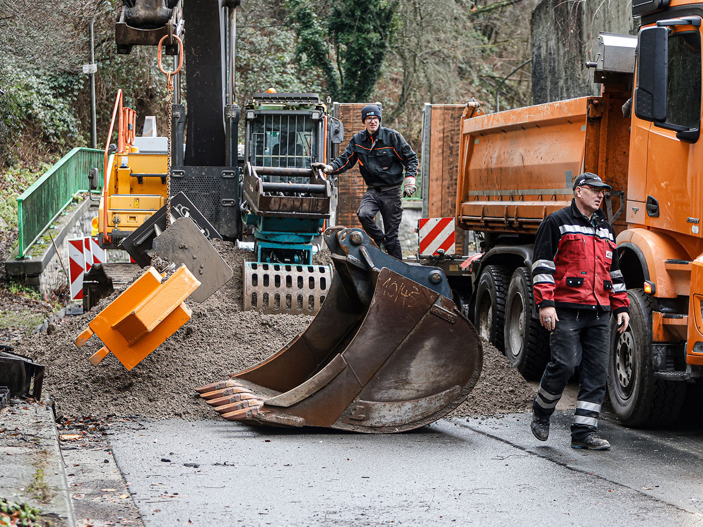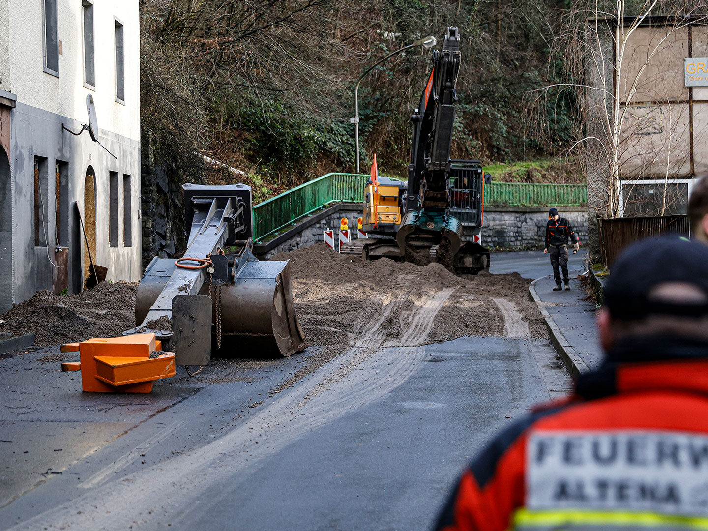 Stefan Kemper, Kämmerer der Stadt Altena, war selbst an der Werdohler Straße vor Ort und zeigte sich überrascht, wie schnell solch ein Abriss vonstatten gehe. Die Spezialisten der Firma Müller leisteten ganze Arbeit. Dennoch könne die Bundesstraße aller Voraussicht nach erst am Montagmorgen wieder für den Verkehr freigegeben werden. Denn: Zunächst muss natürlich der Abriss des in Brand geratenen Hauses komplett abgeschlossen sein. Dann müsse der ganze Schutt abtransportiert und die Fahrbahn gereinigt werden. Zum Schutz dieser sowie der darunter liegenden Versorgungsleitungen musste vor den Abrissarbeiten ein sogenanntes Fallbett aus rund 50 Tonnen Schutt aufgebracht werden.
