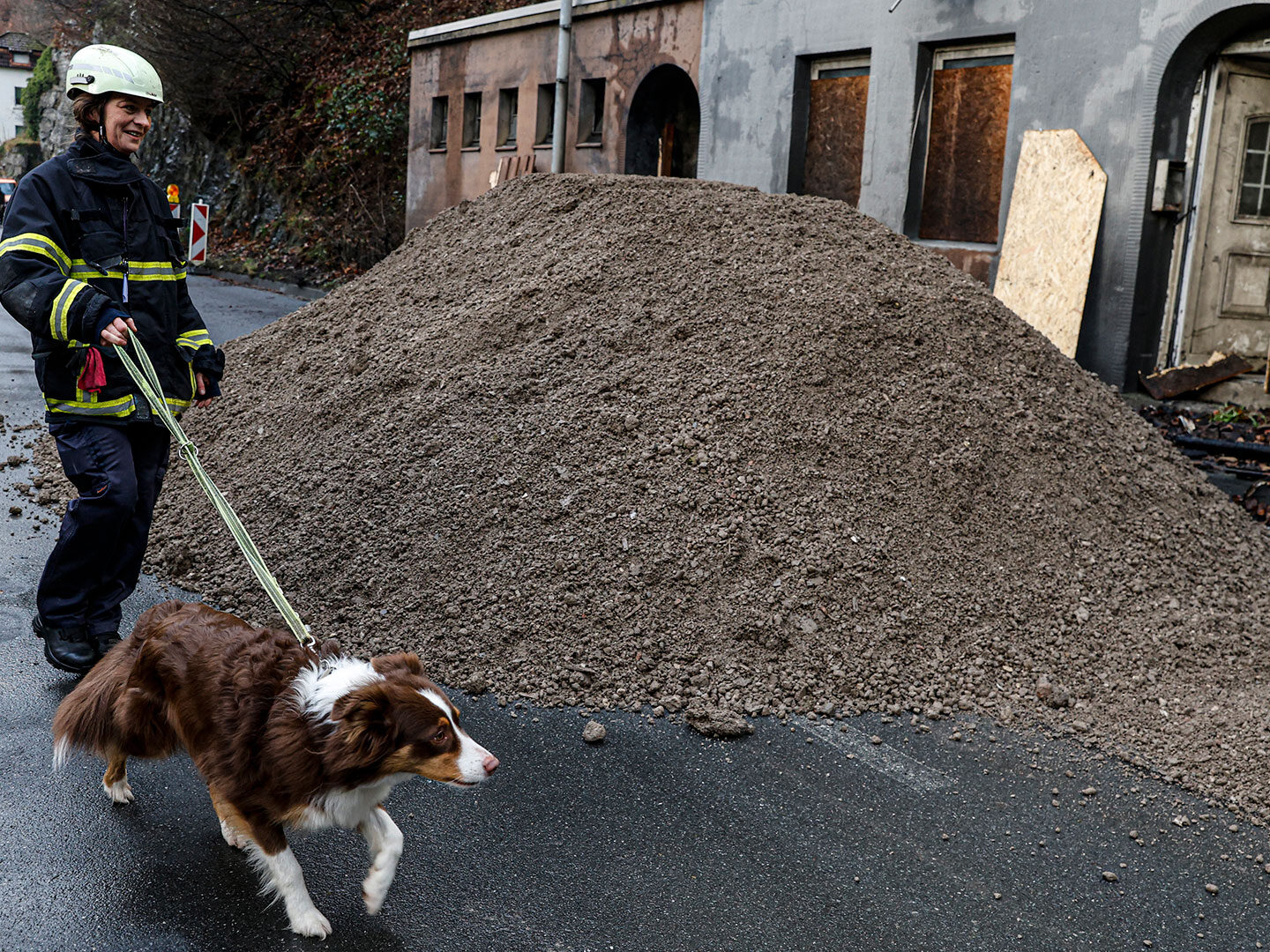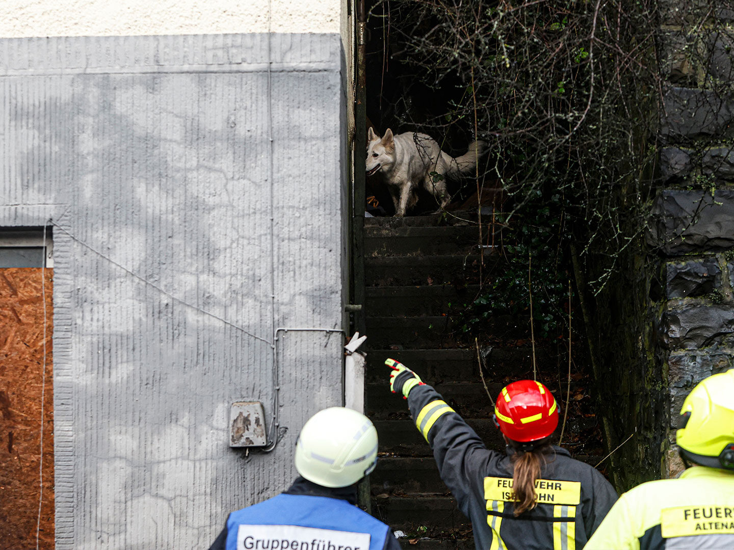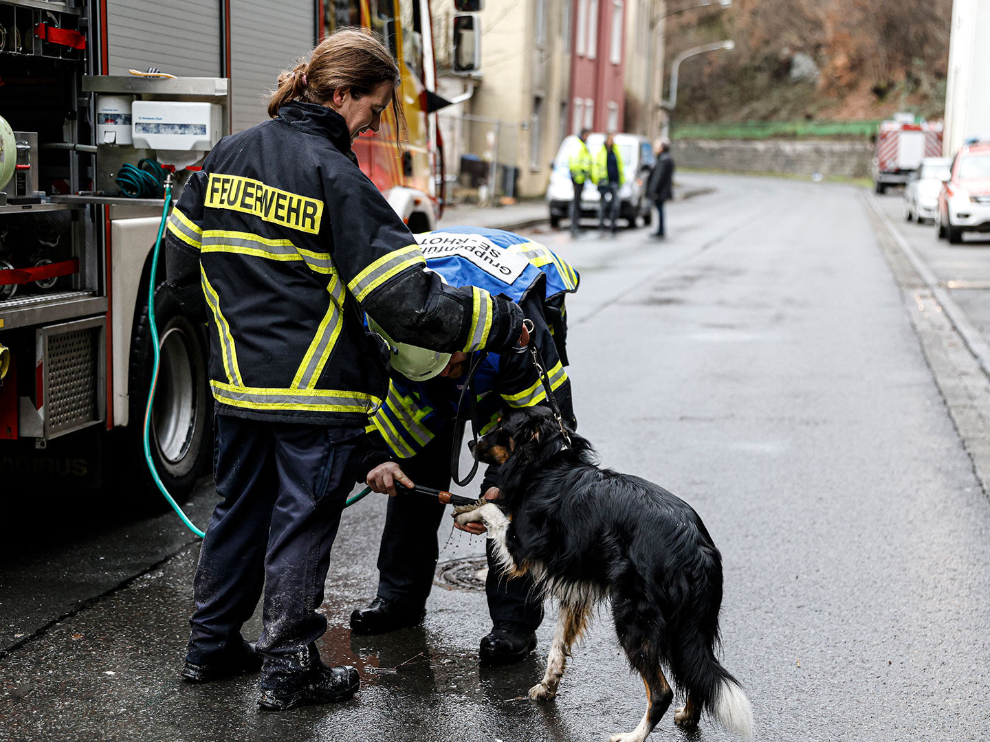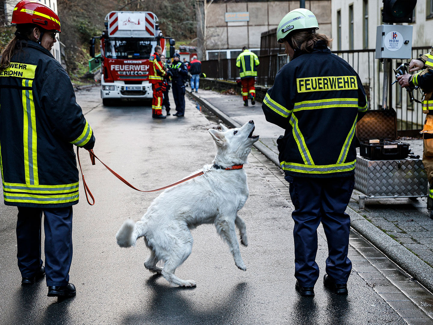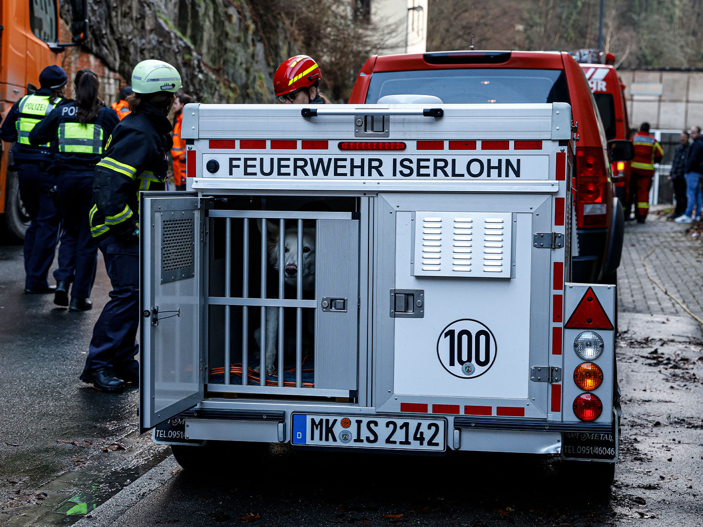 Die zur Suche nach Menschen im einsturzgefährdeten Haus an der Werdohler Straße eingesetzten Rettungshunde der Iserlohner Sondereinheit der Feuerwehr sind mit ihrer Arbeit fertig, sie haben keine Personen im Innern finden können. Jetzt kann der Abriss beginnen.