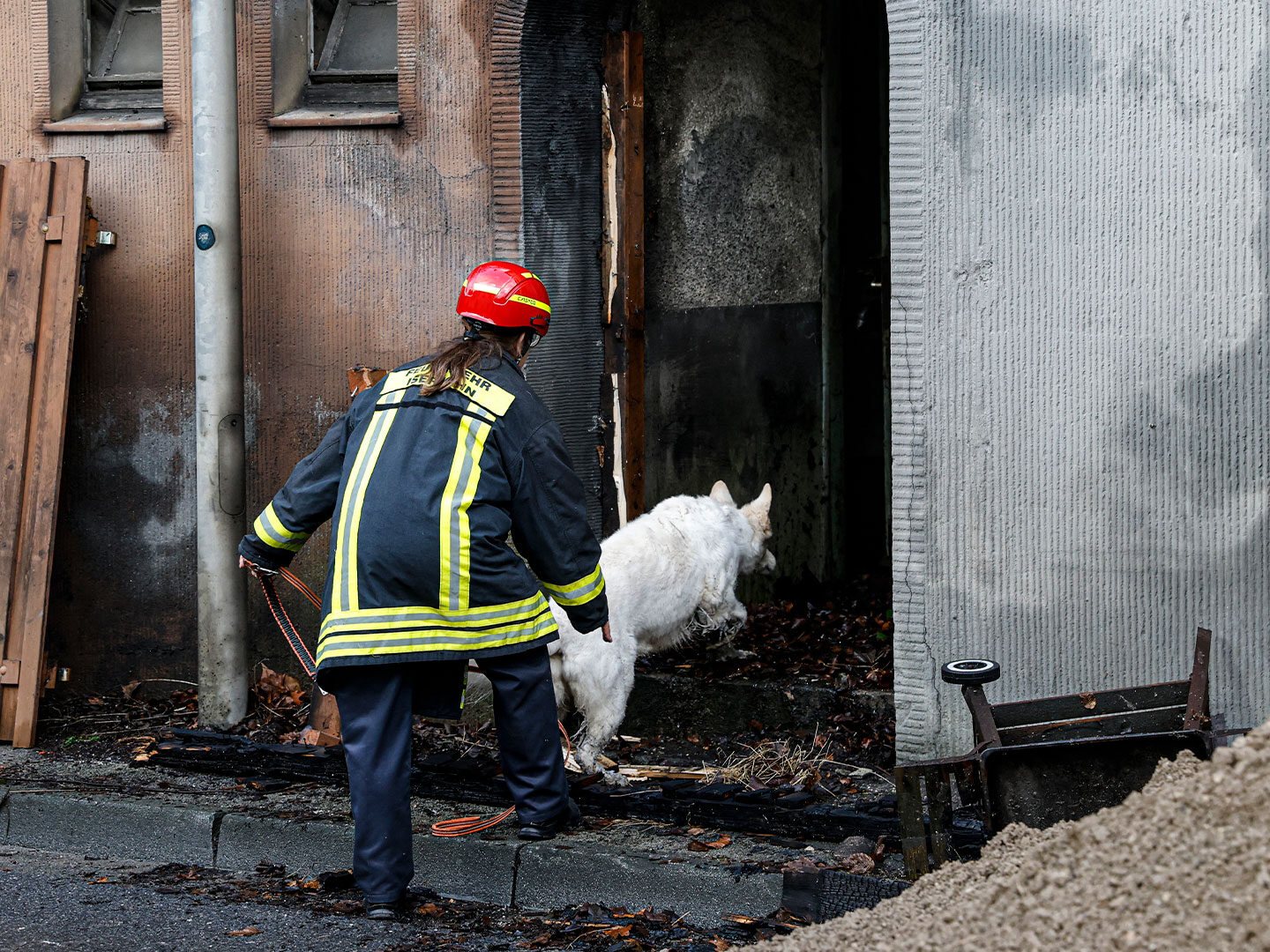 Vorsorglich ist eine Einheit Rettungshunde der Feuerwehr Iserlohn zur Einsatzstelle alarmiert worden. Die Hunde sollen die Brandruine absuchen, um sicher auszuschließen, dass sich keine Personen mehr in dem Gebäude befunden haben – wohl auch mit Blick darauf, dass die Brandursache ungeklärt ist, aber Brandstiftung nicht ausgeschlossen werden kann.