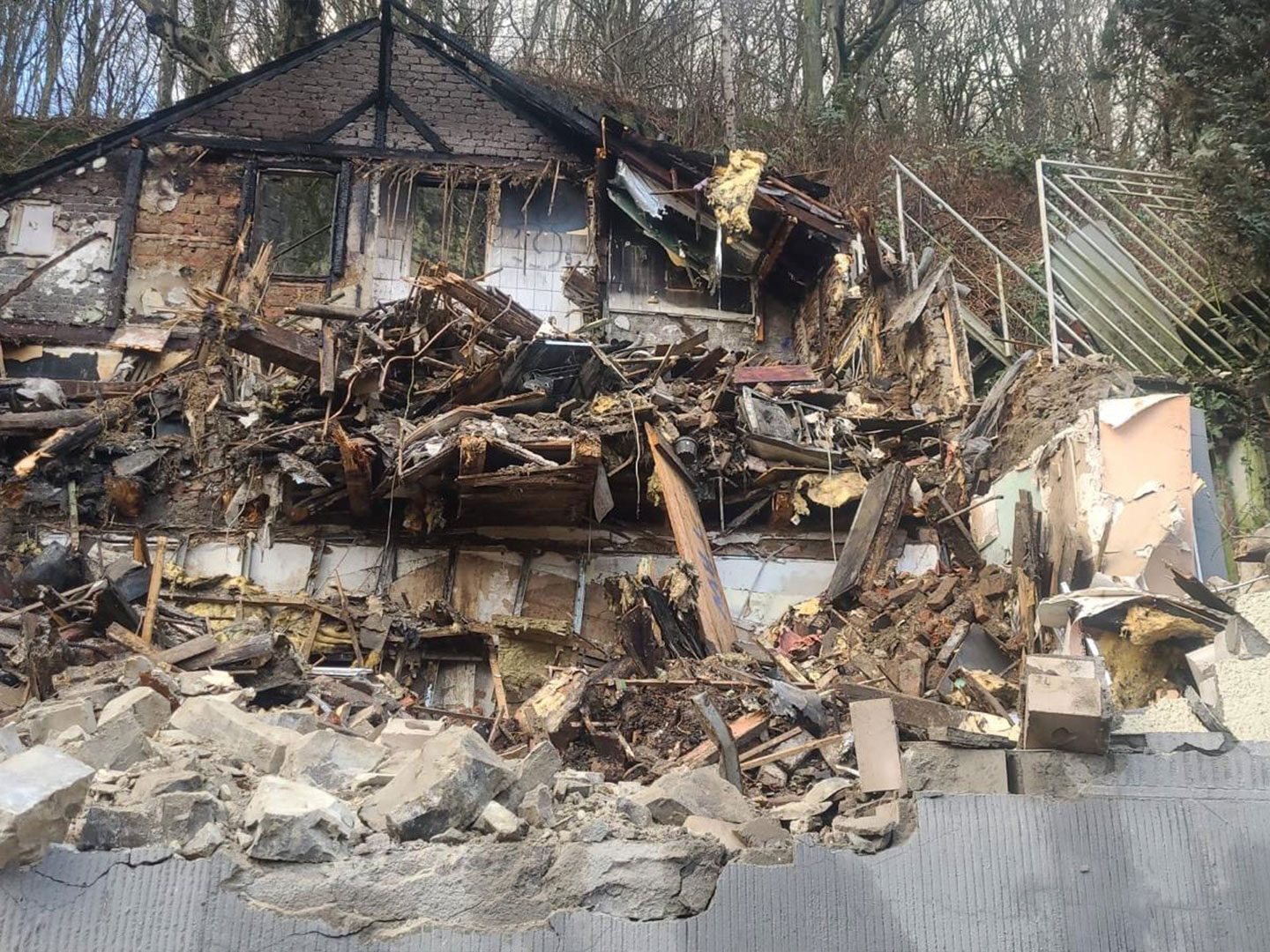 Das Unternehmen von Siggi Müller aus Nachrodt hat am Donnerstag damit begonnen, das Brandhaus abzureißen und den Schutt in Container zu sortieren. Foto: Siegmund Müller