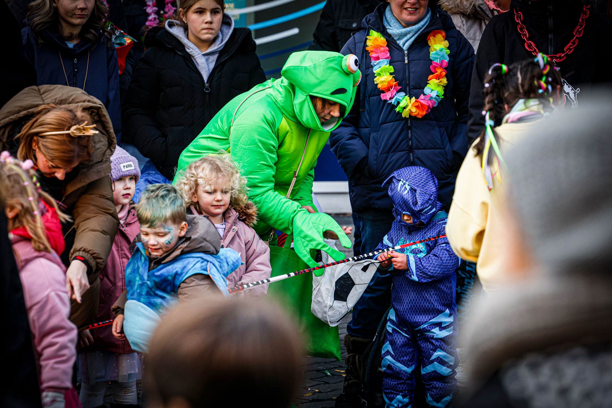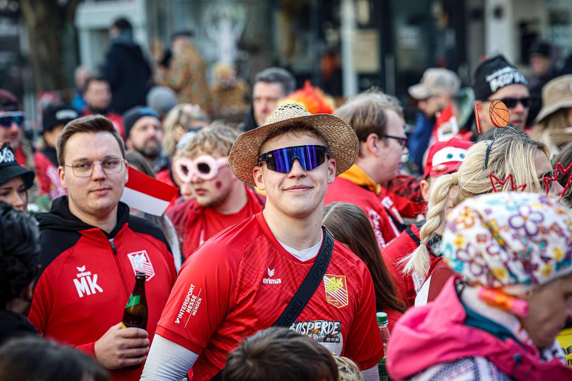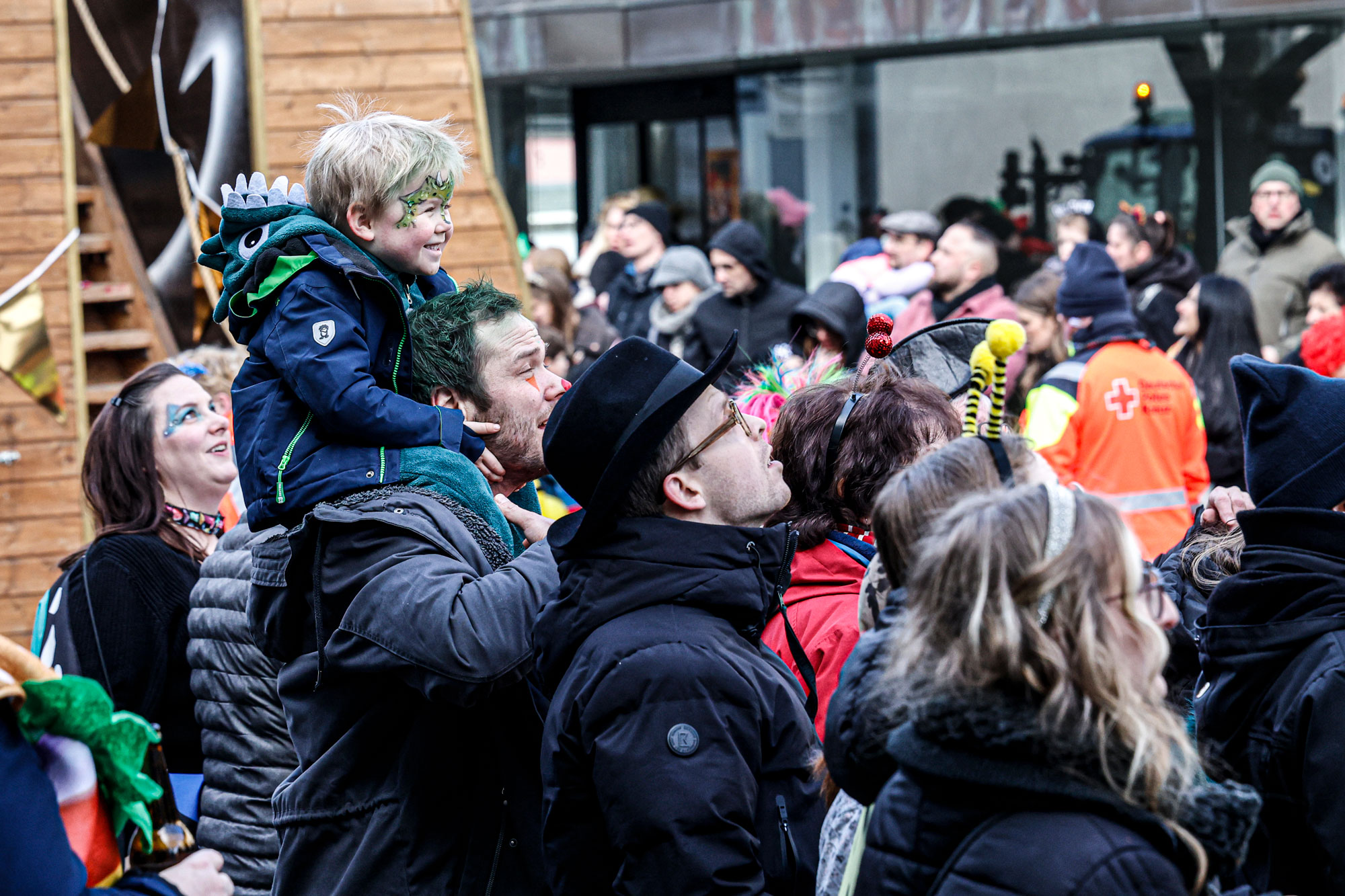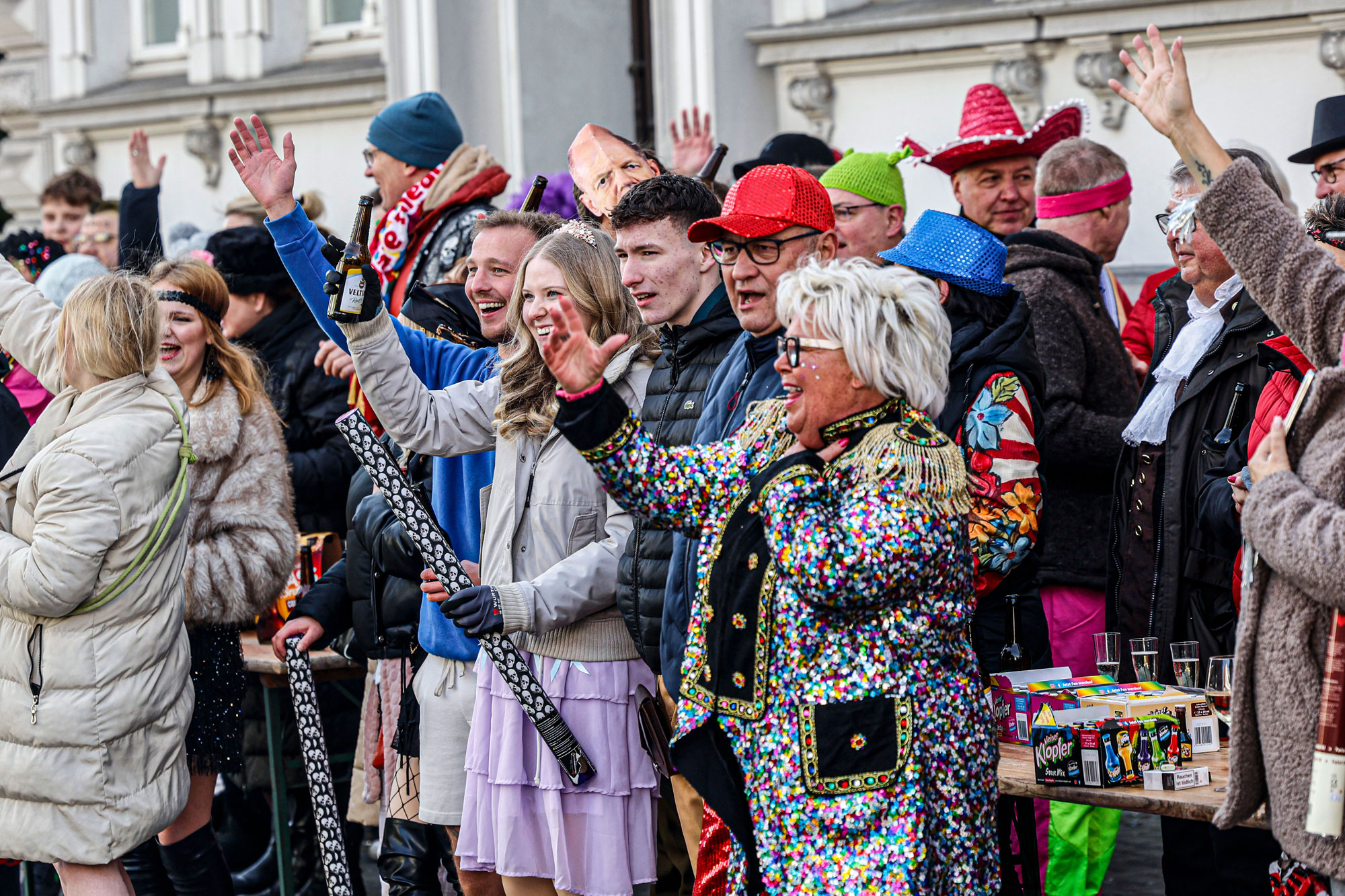 Der Platz am Alten Rathaus füllte sich schnell. Mehrere Tausend Menschen verfolgten teils verkleidet den beliebten Umzug am Tulpensonntag und sammelten jede Menge Kamelle.