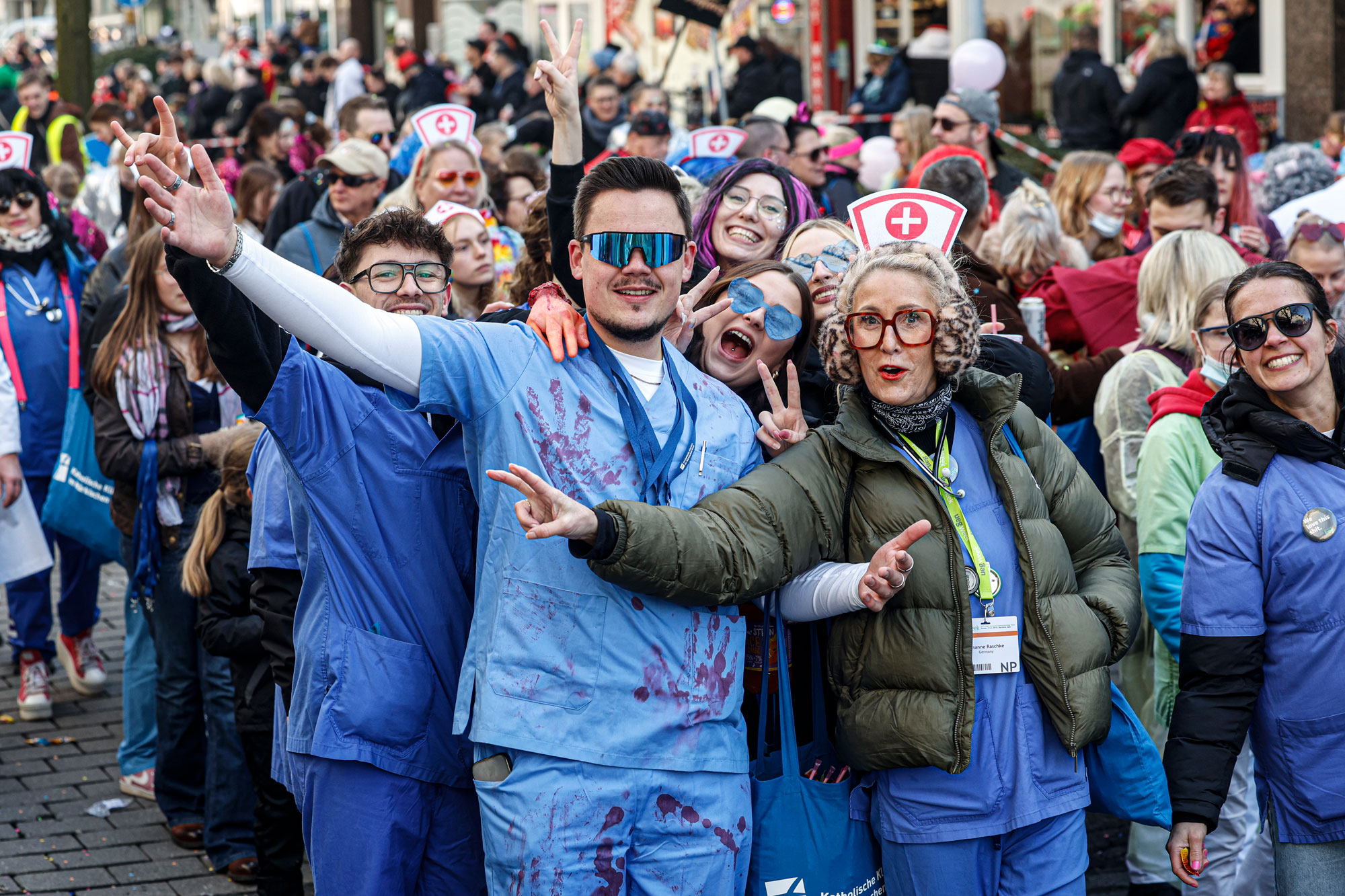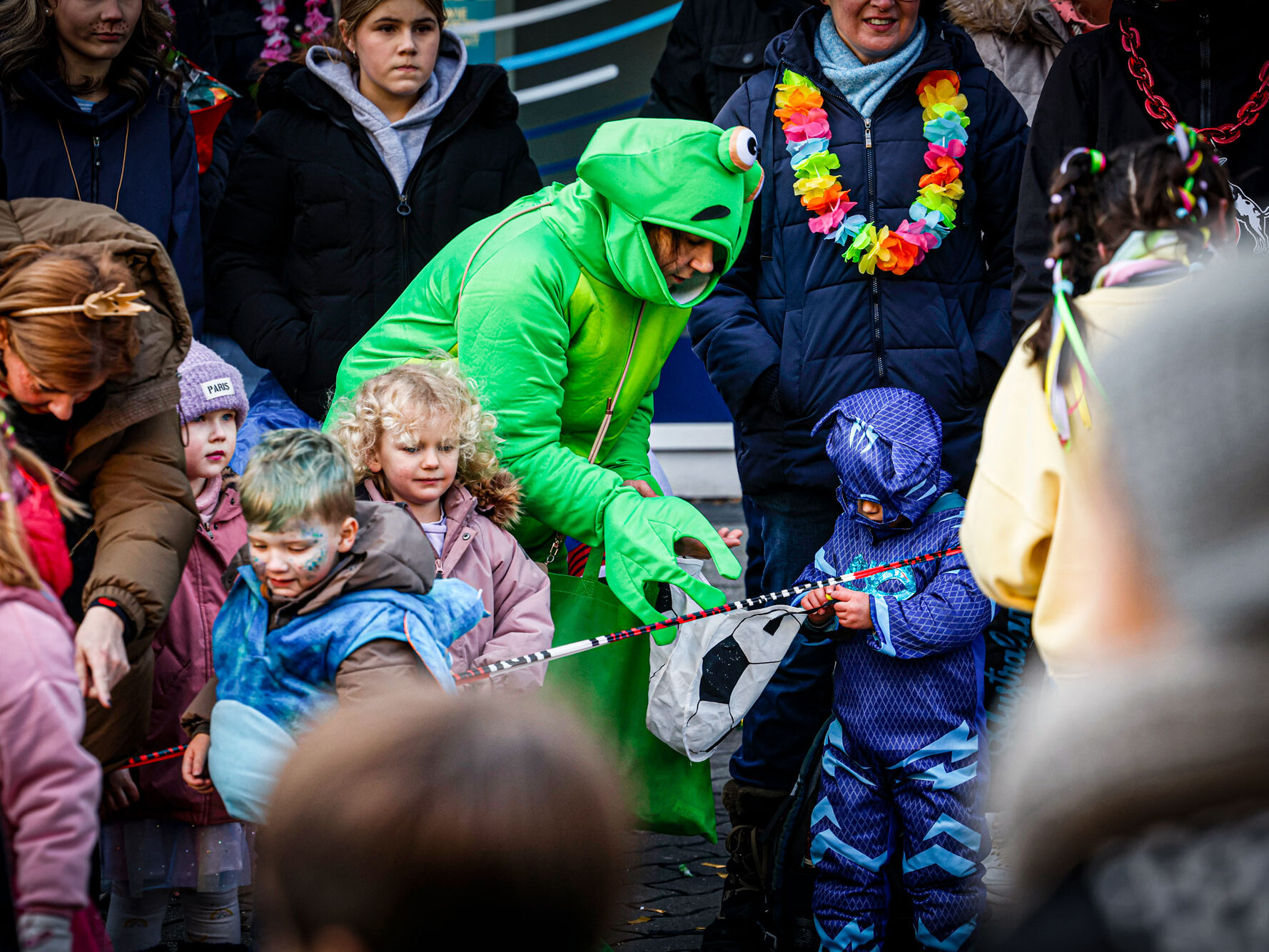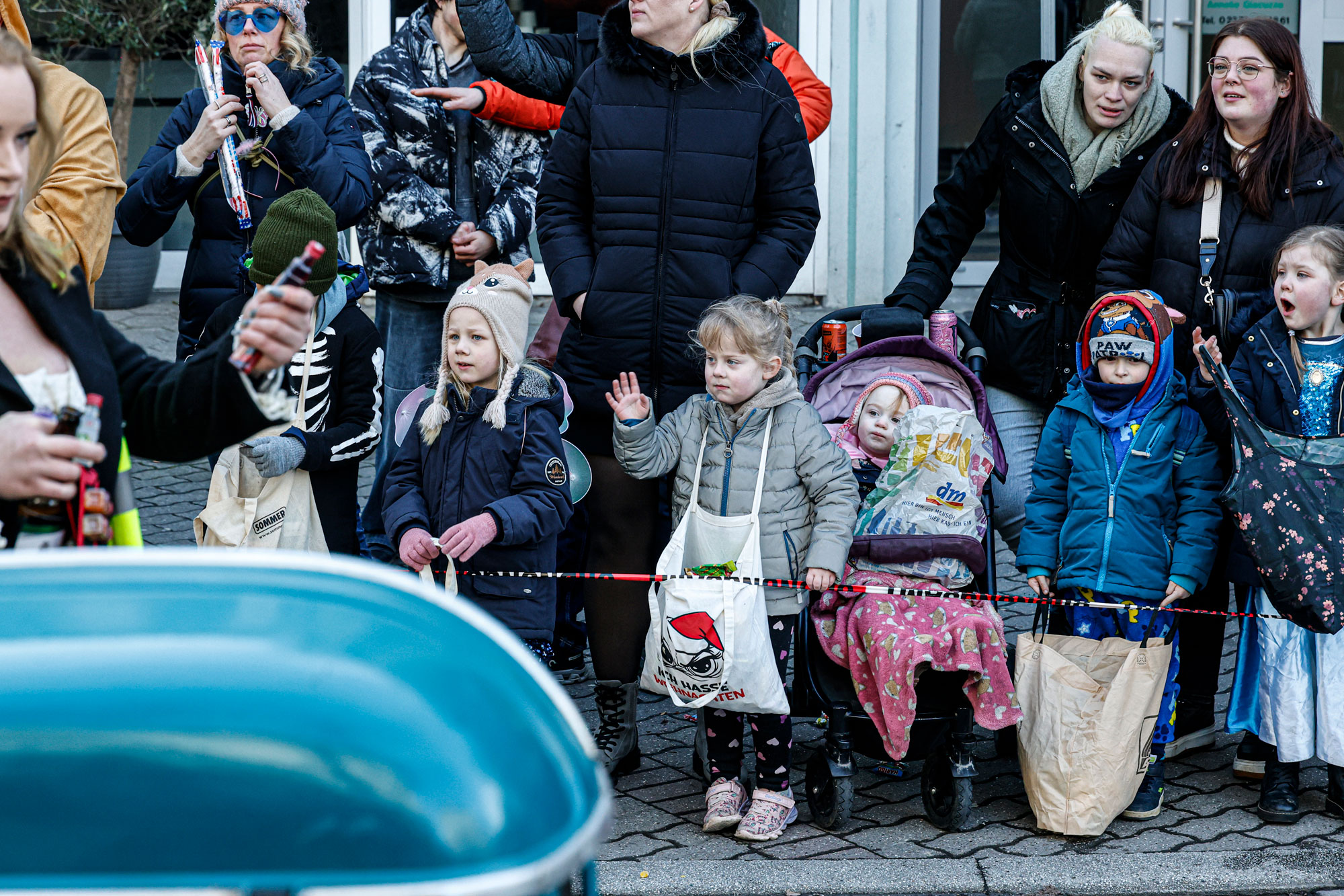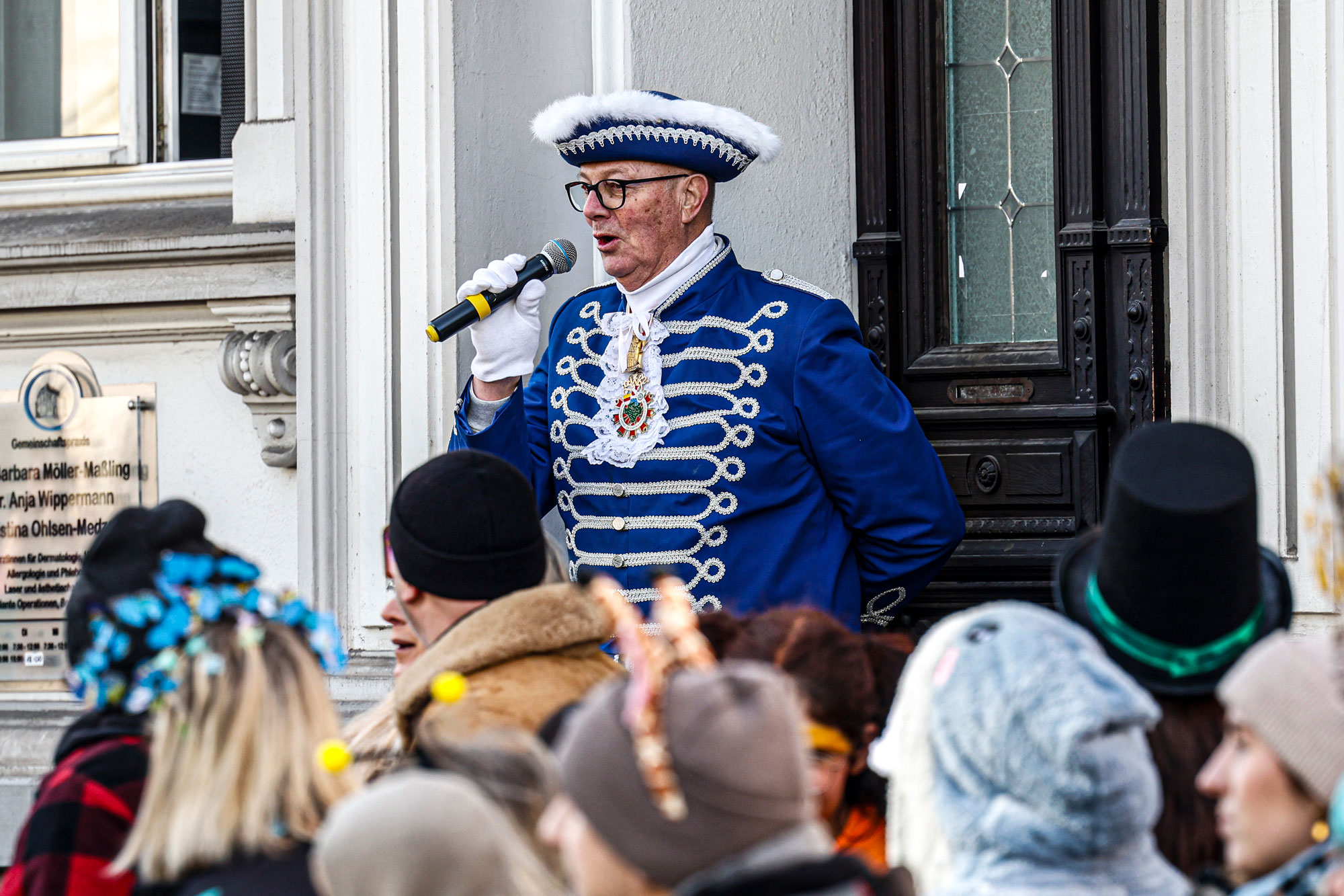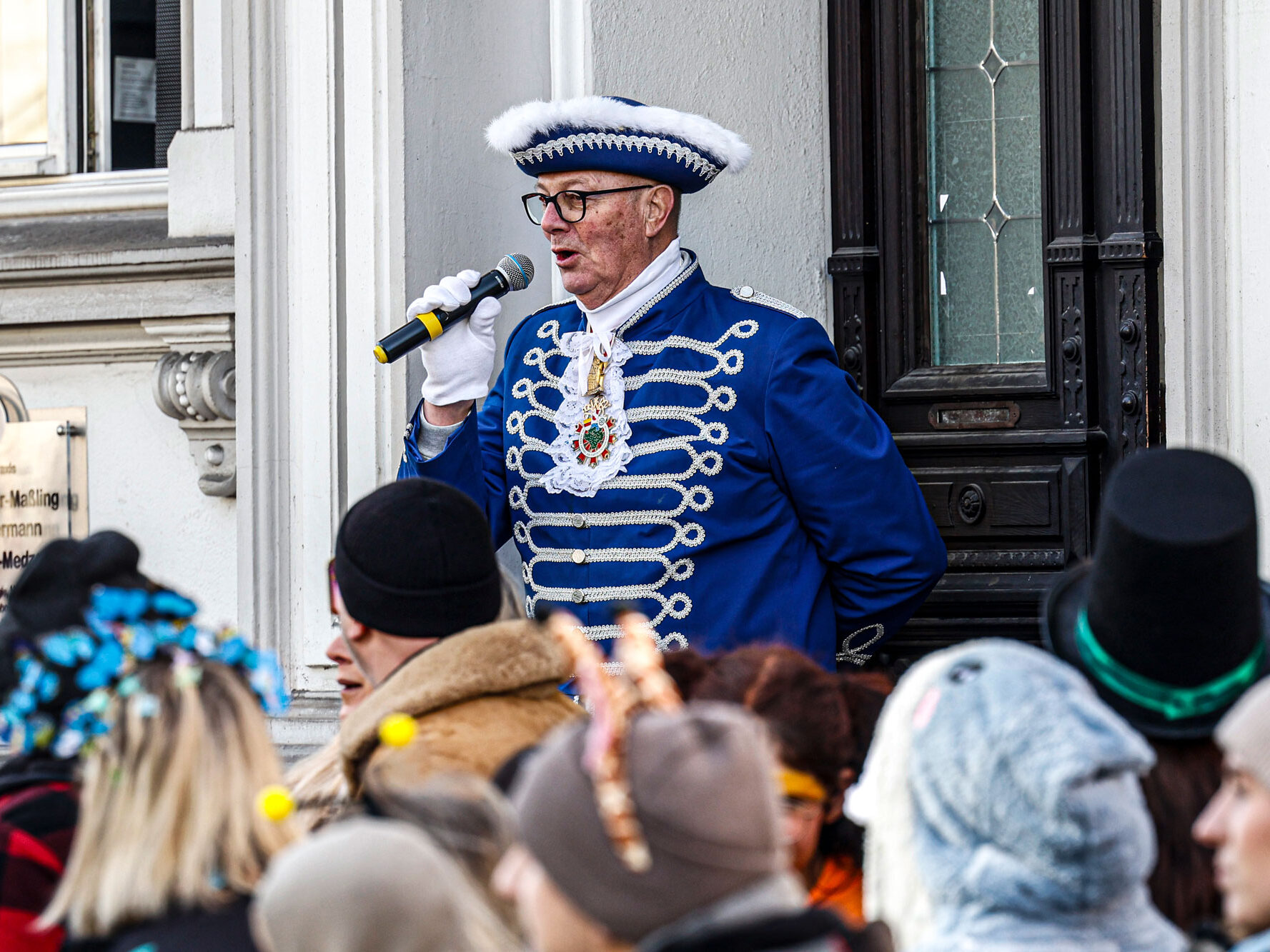 Der Platz am Alten Rathaus füllte sich schnell. Mehrere Tausend Menschen verfolgten teils verkleidet den beliebten Umzug am Tulpensonntag und sammelten jede Menge Kamelle.