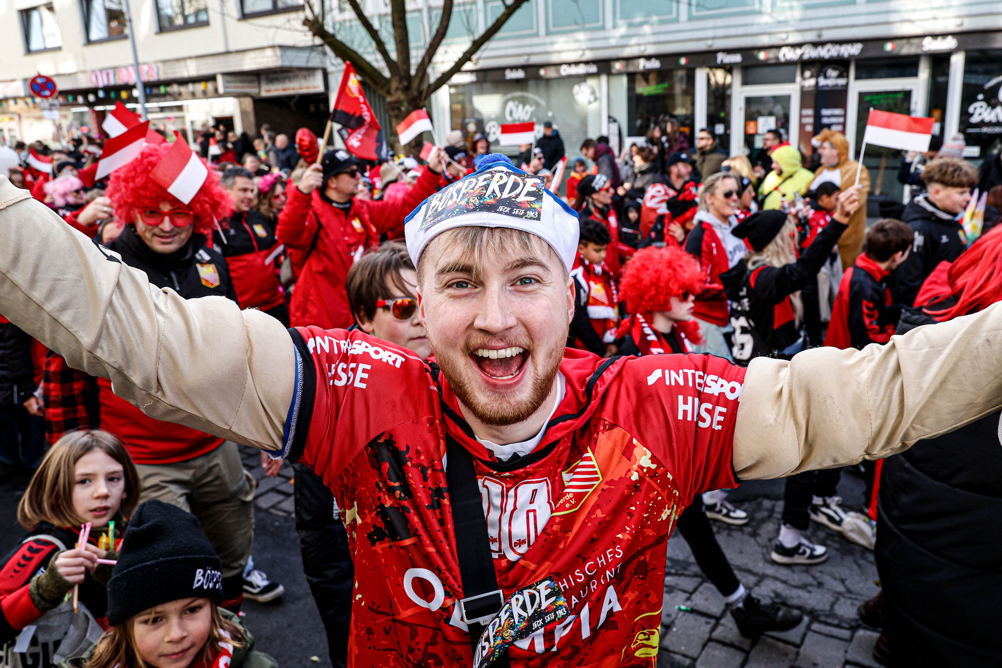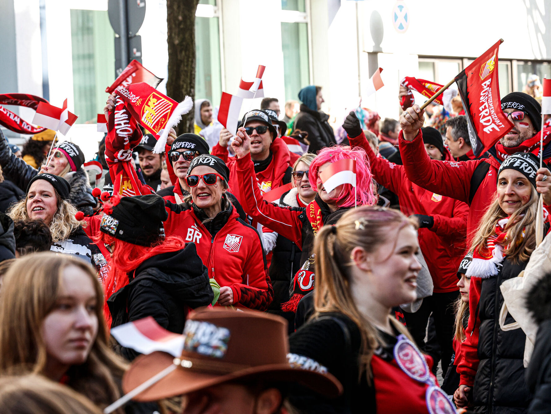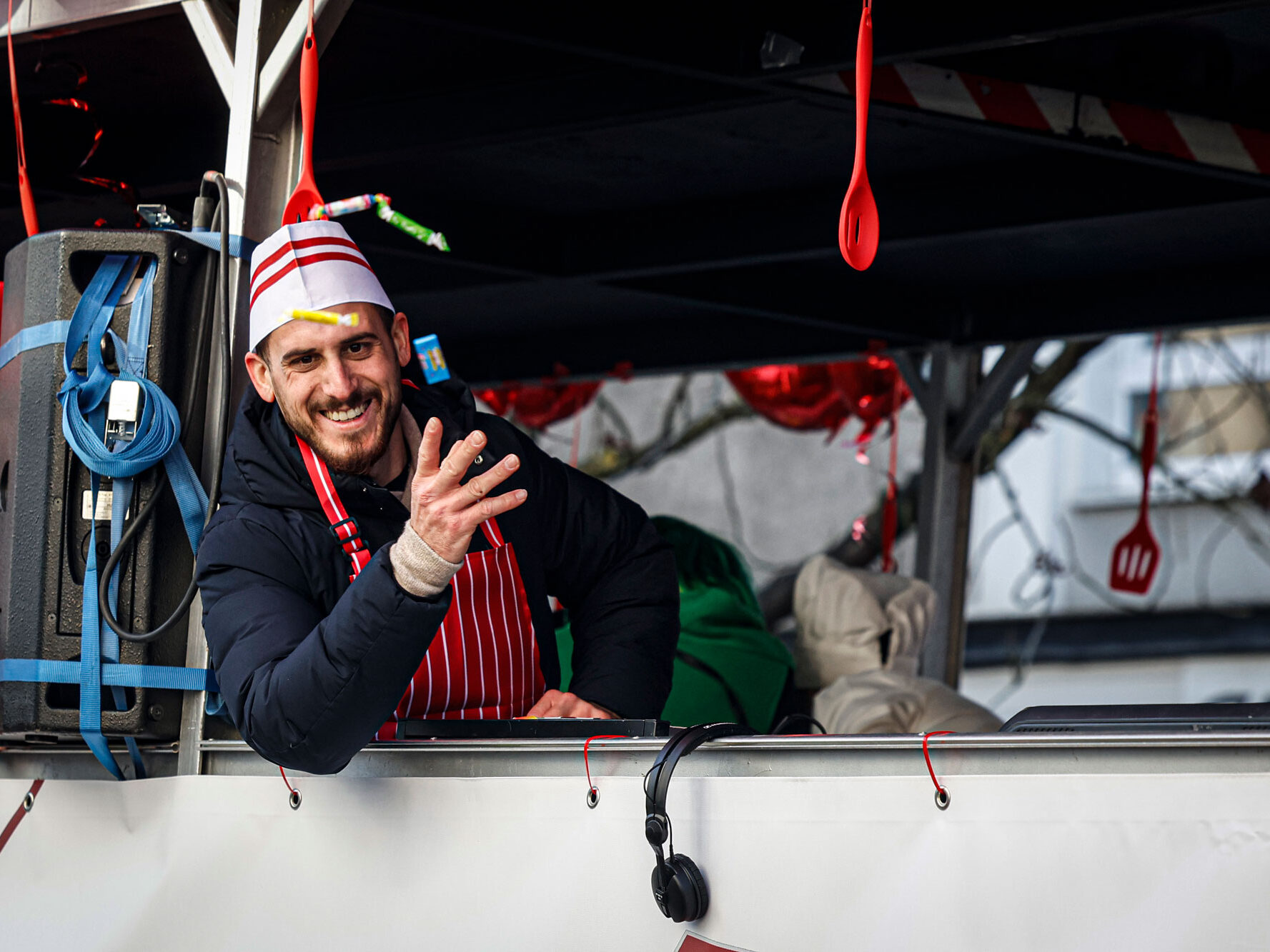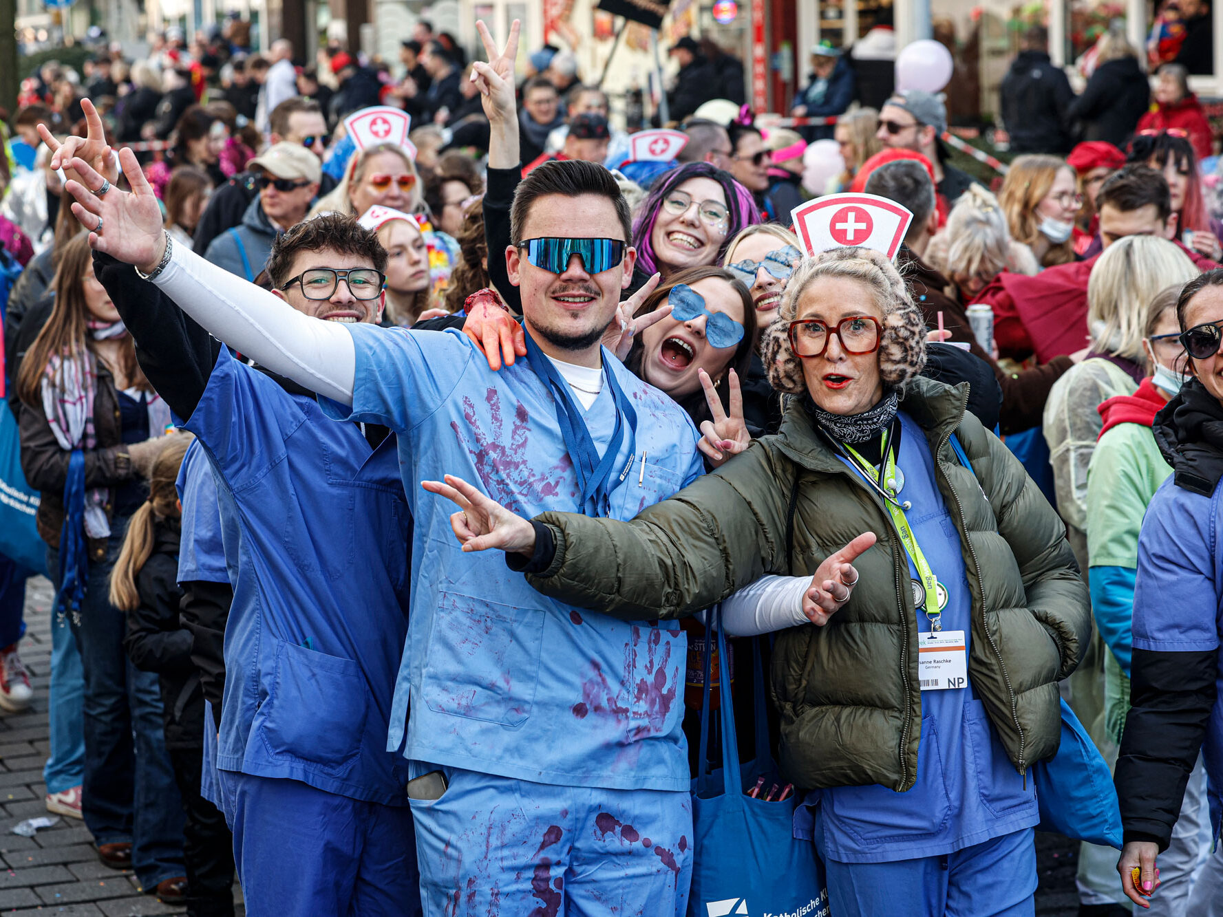 Der Platz am Alten Rathaus füllte sich schnell. Mehrere Tausend Menschen verfolgten teils verkleidet den beliebten Umzug am Tulpensonntag und sammelten jede Menge Kamelle.