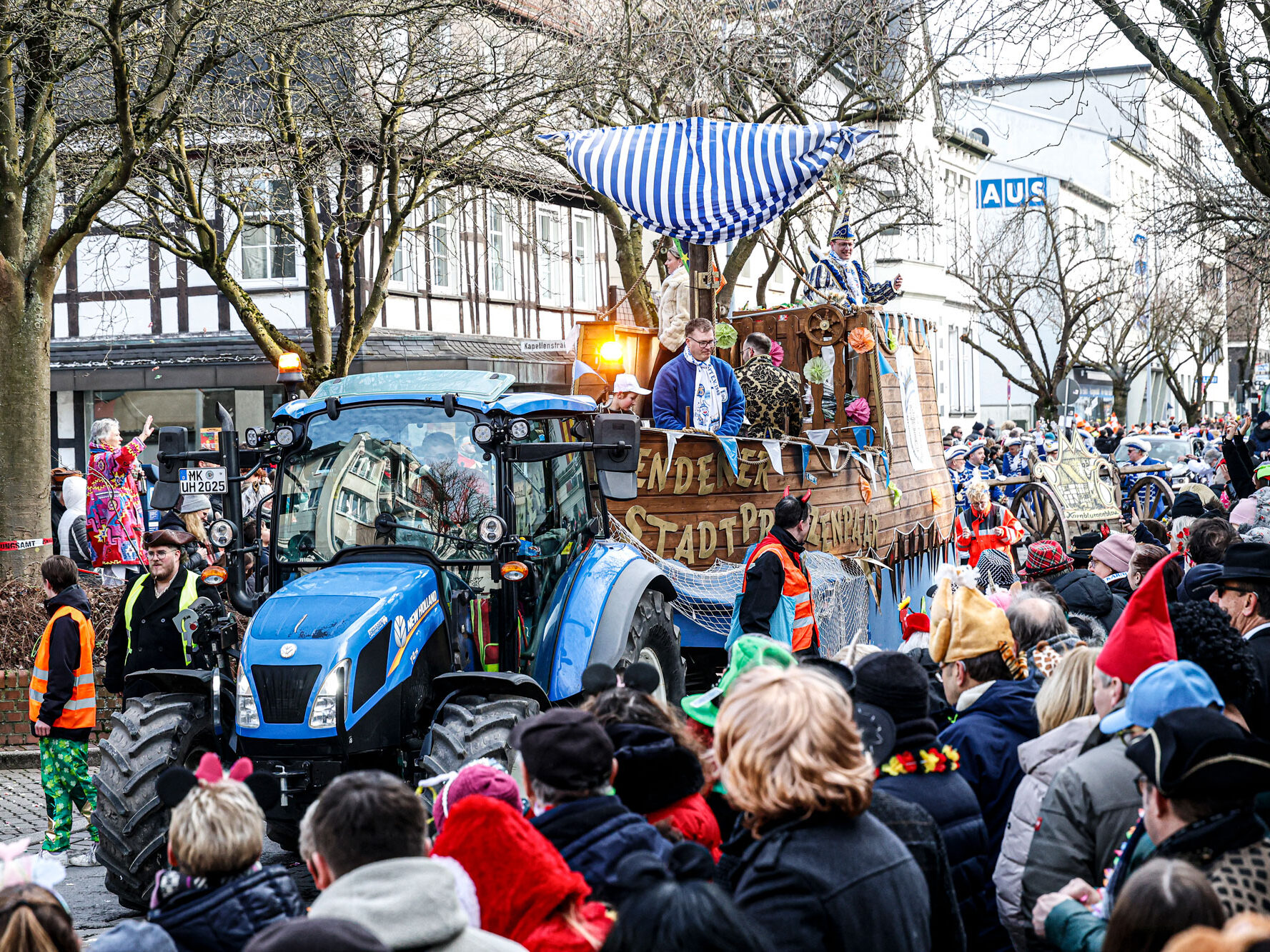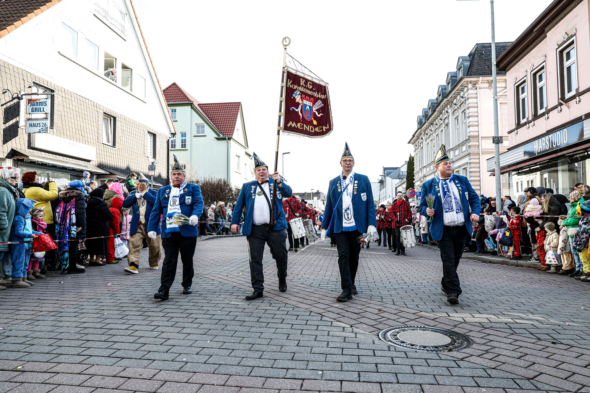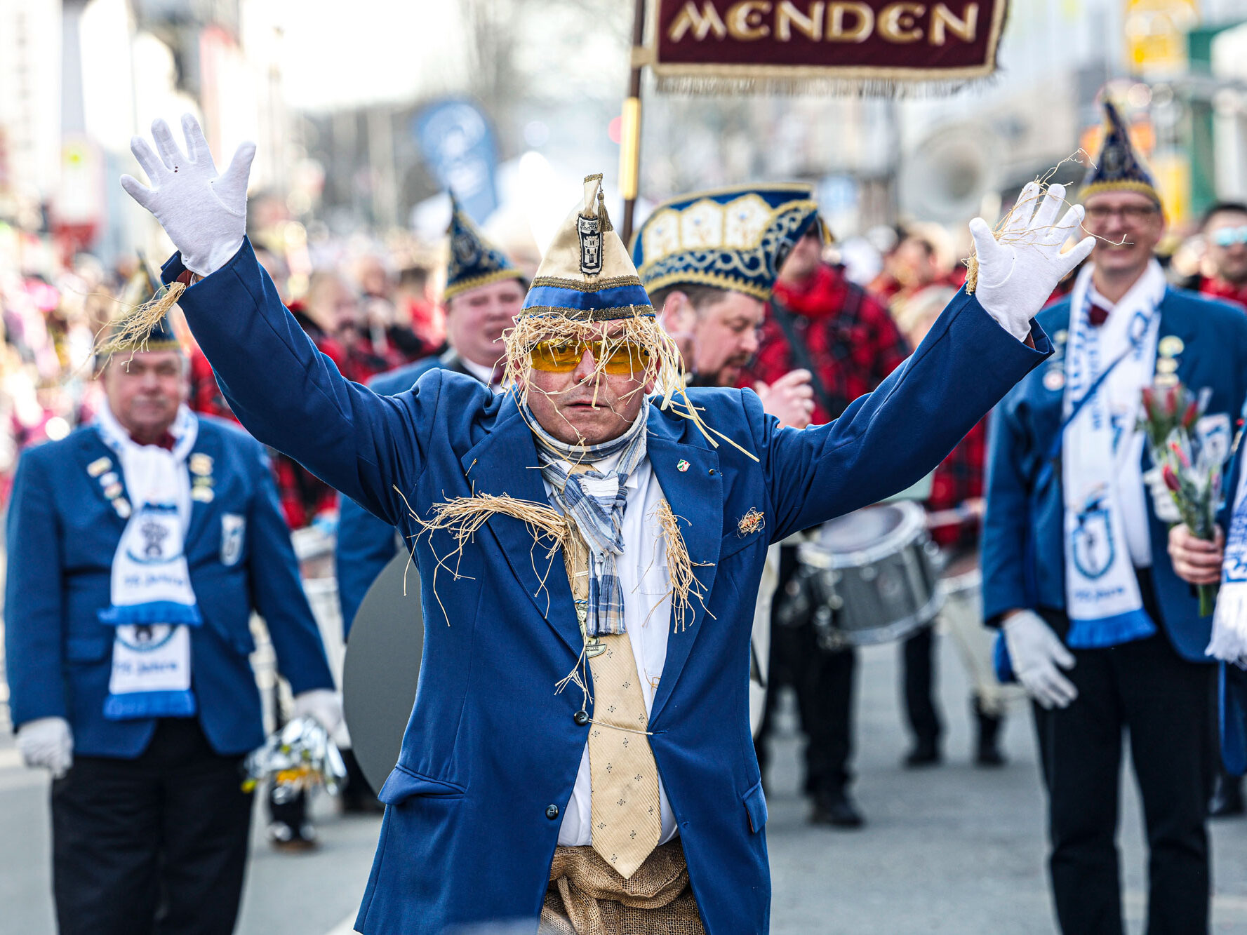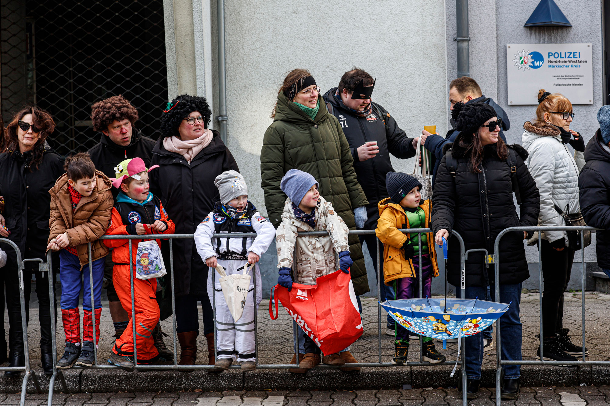 Bei dem „Lindwurm“, dem großen Umzug am Tulpensonntag, sind rund 1800 Jecken mit etwa 30 Wagen und in mehr als 40 Fußgruppen durch Menden gezogen.