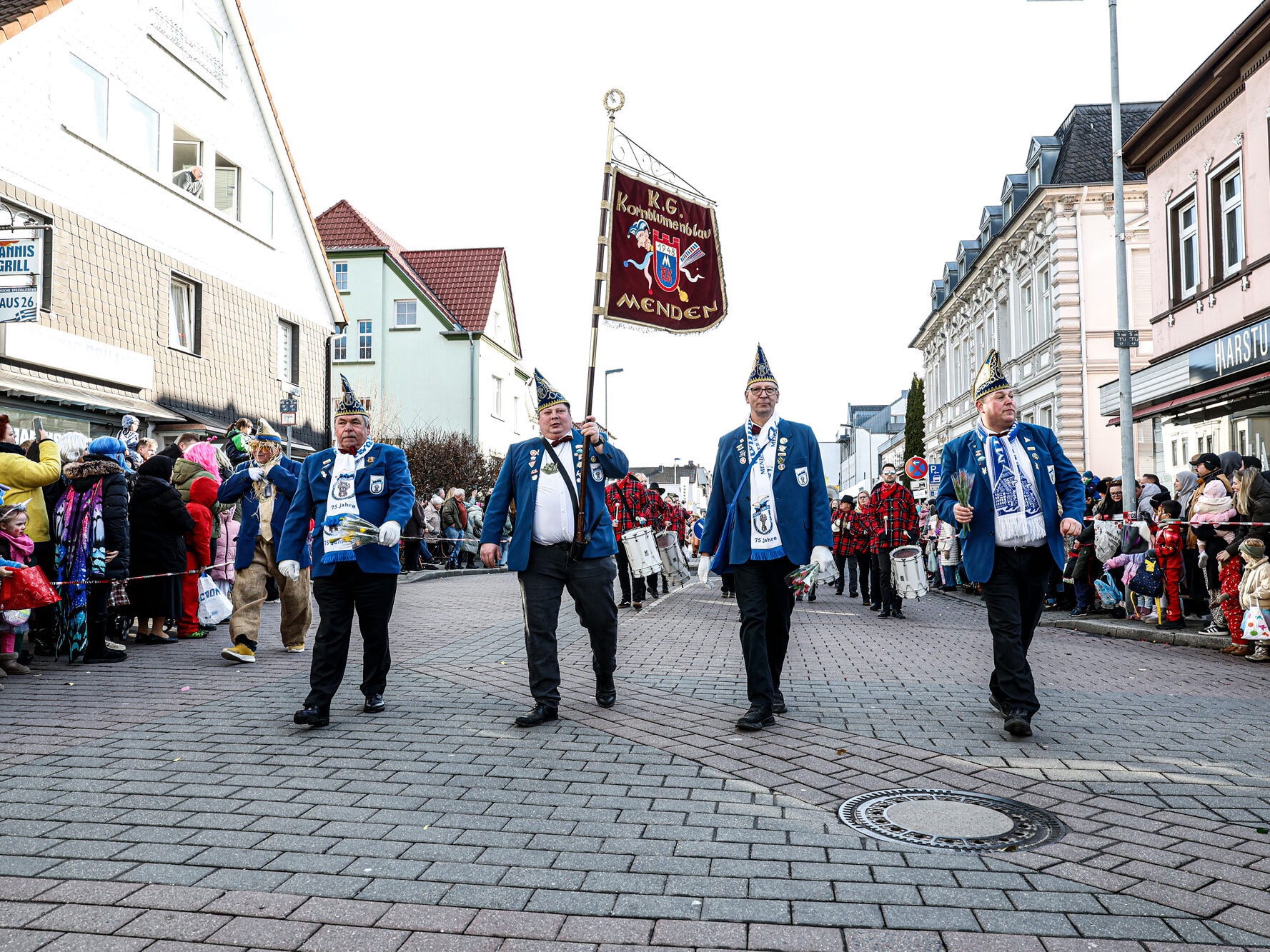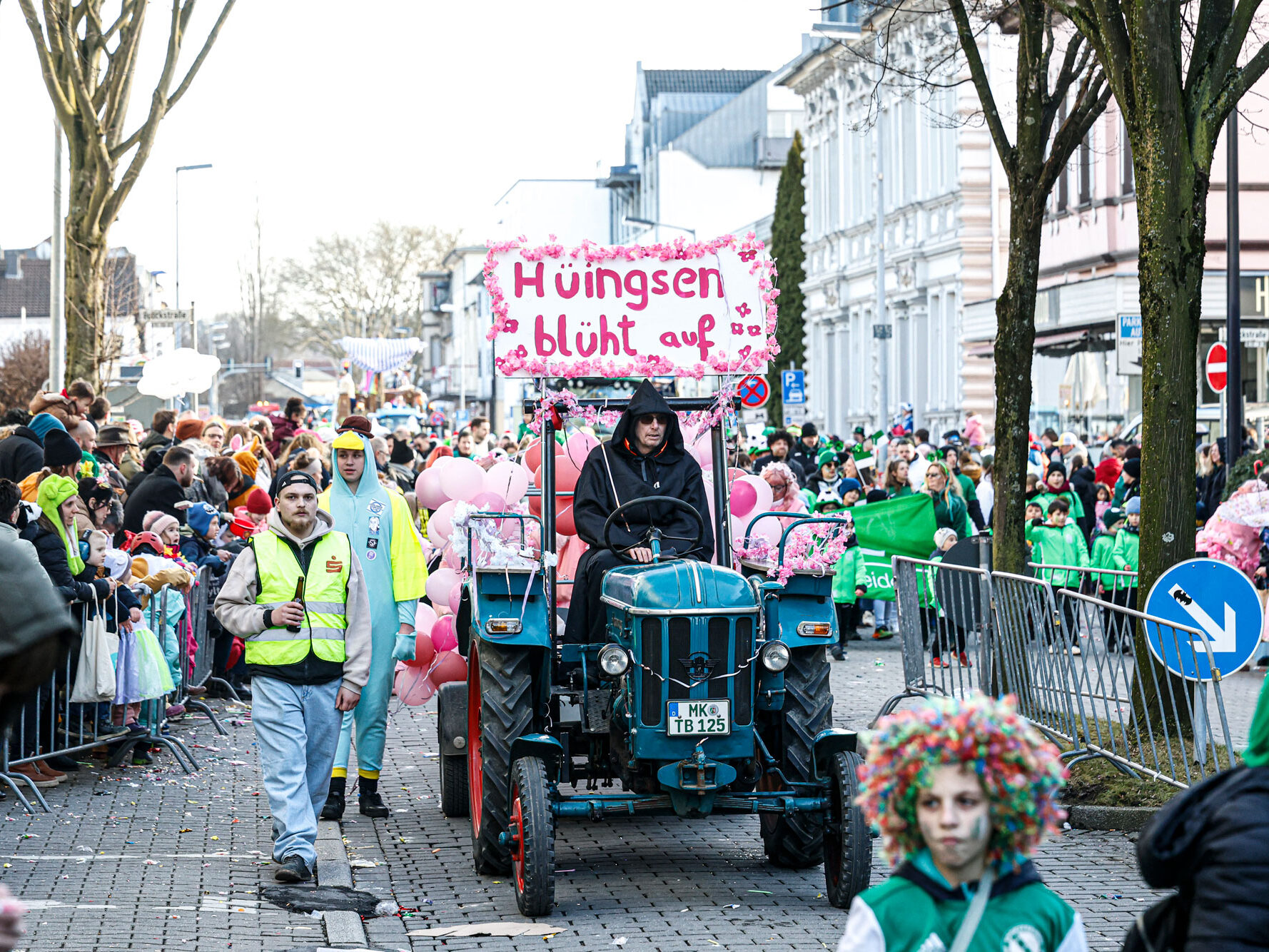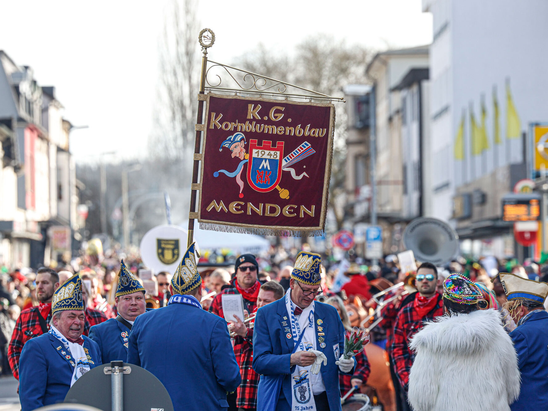 Bei dem „Lindwurm“, dem großen Umzug am Tulpensonntag, sind rund 1800 Jecken mit etwa 30 Wagen und in mehr als 40 Fußgruppen durch Menden gezogen.
