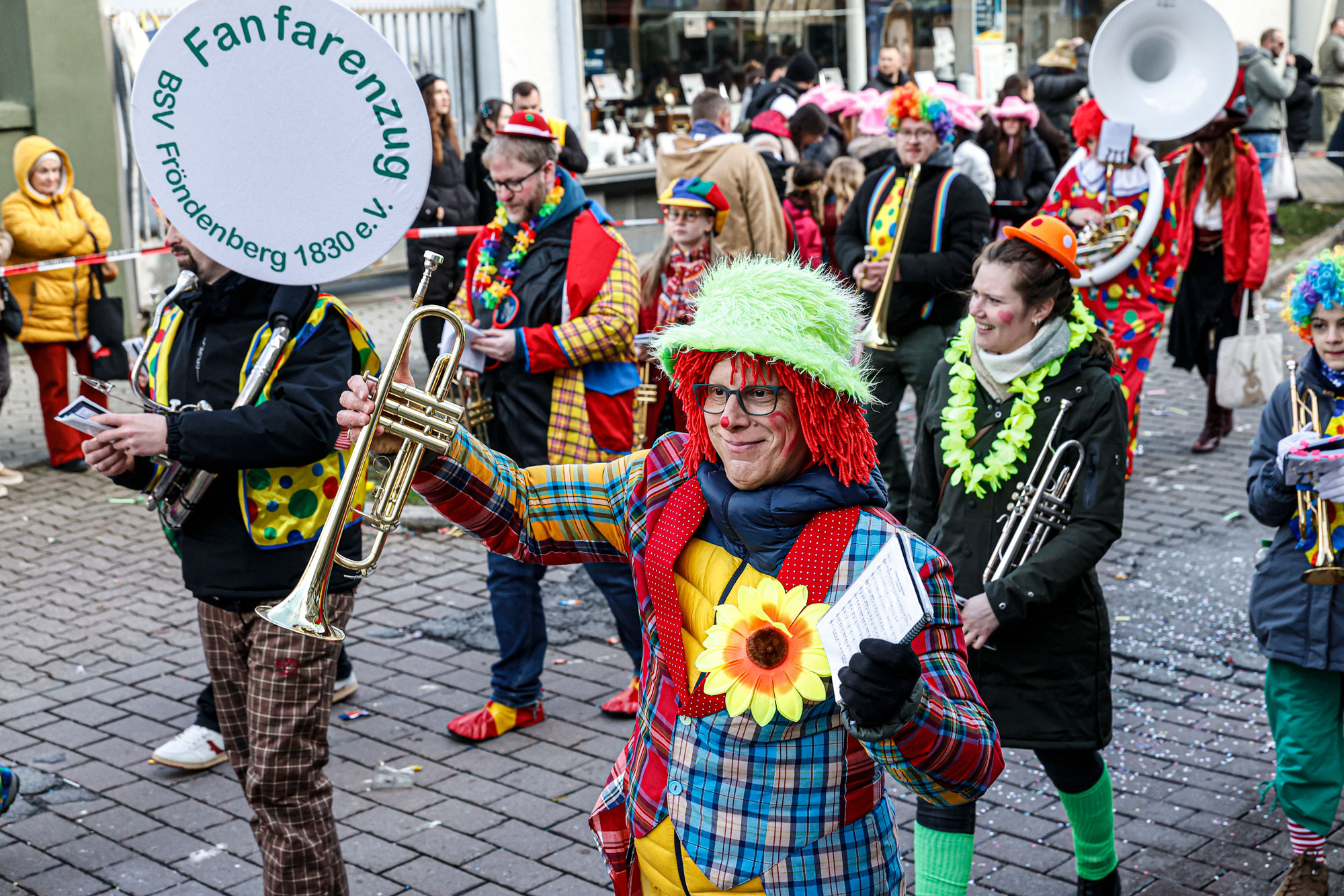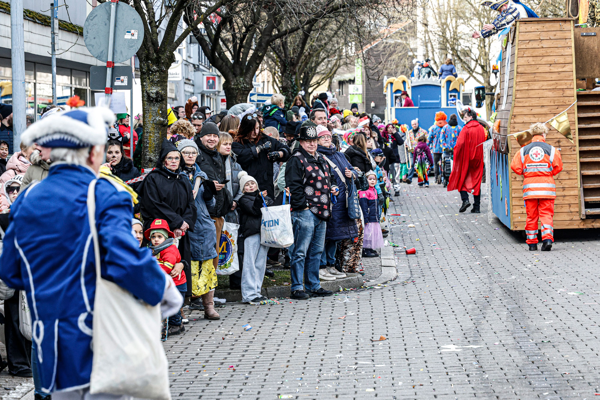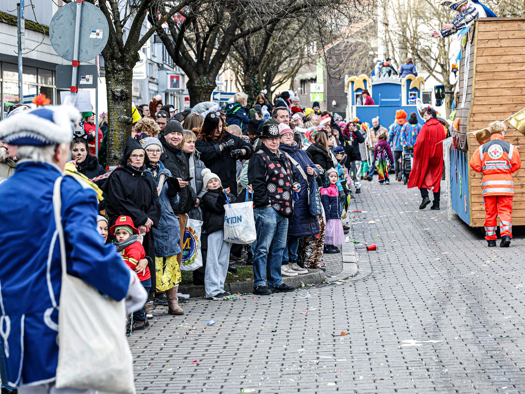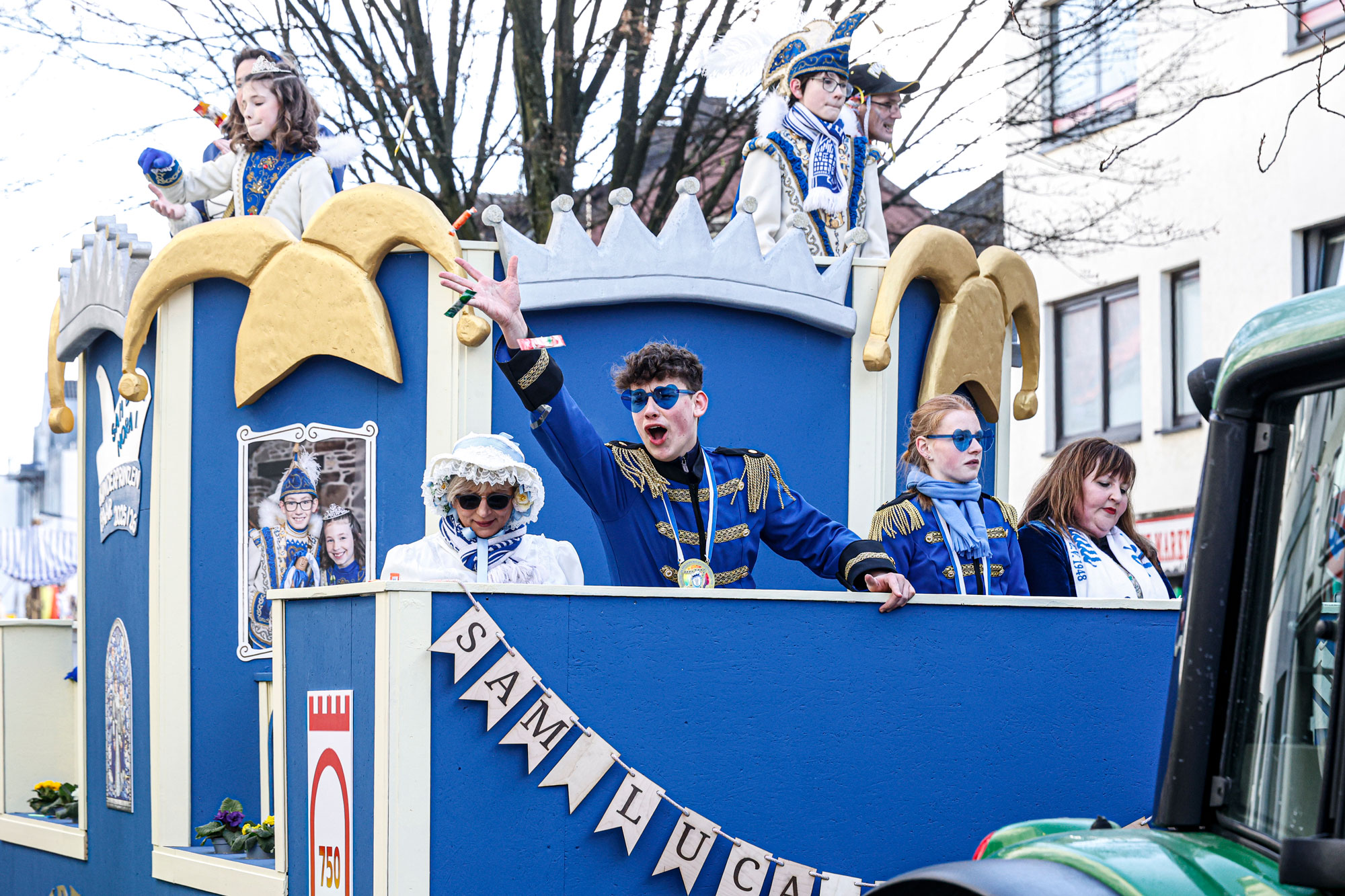 Bei dem „Lindwurm“, dem großen Umzug am Tulpensonntag, sind rund 1800 Jecken mit etwa 30 Wagen und in mehr als 40 Fußgruppen durch Menden gezogen.