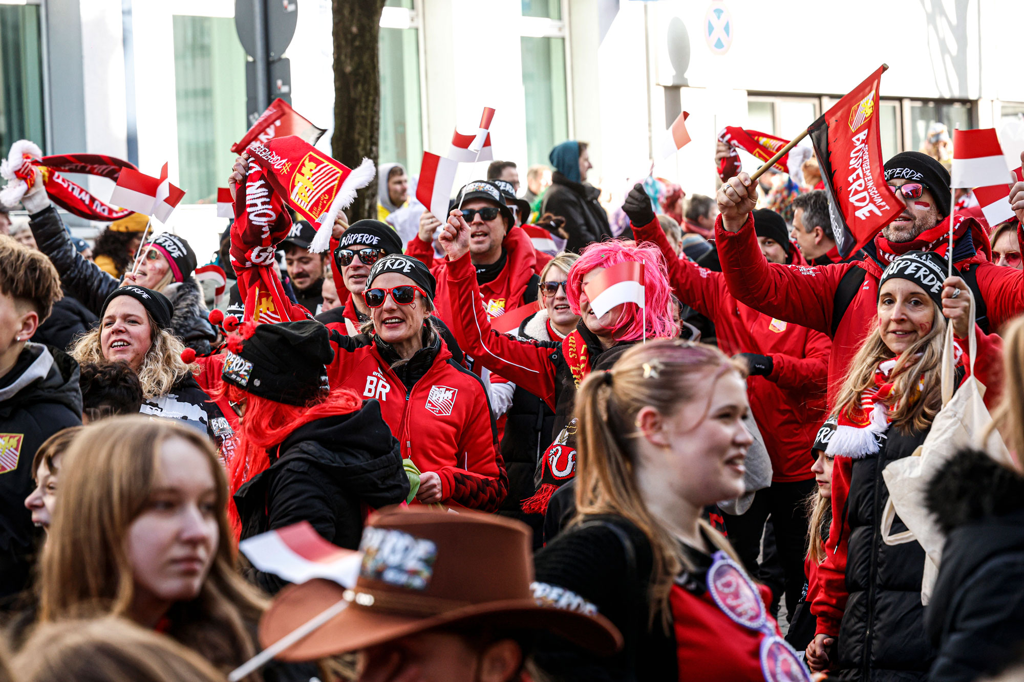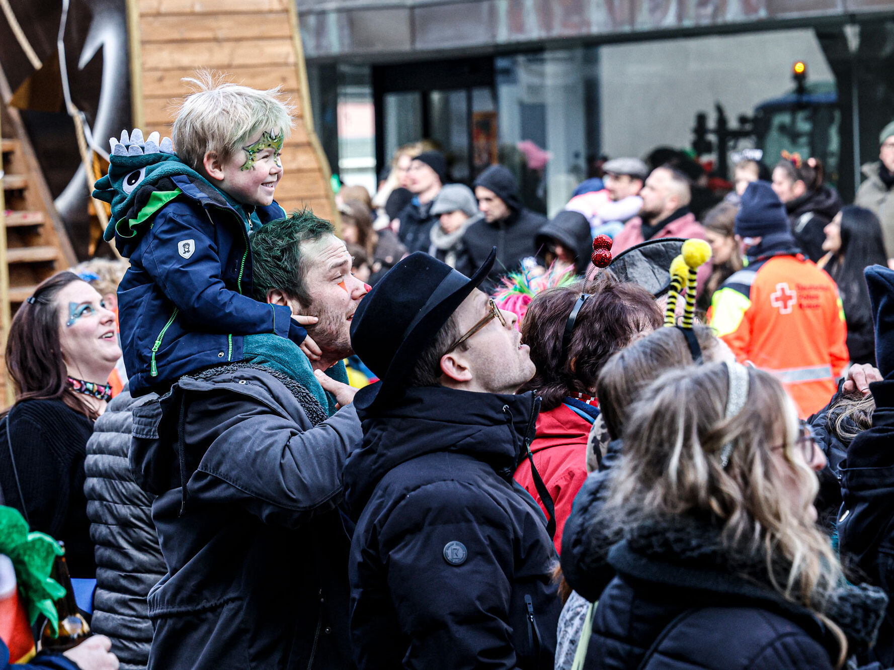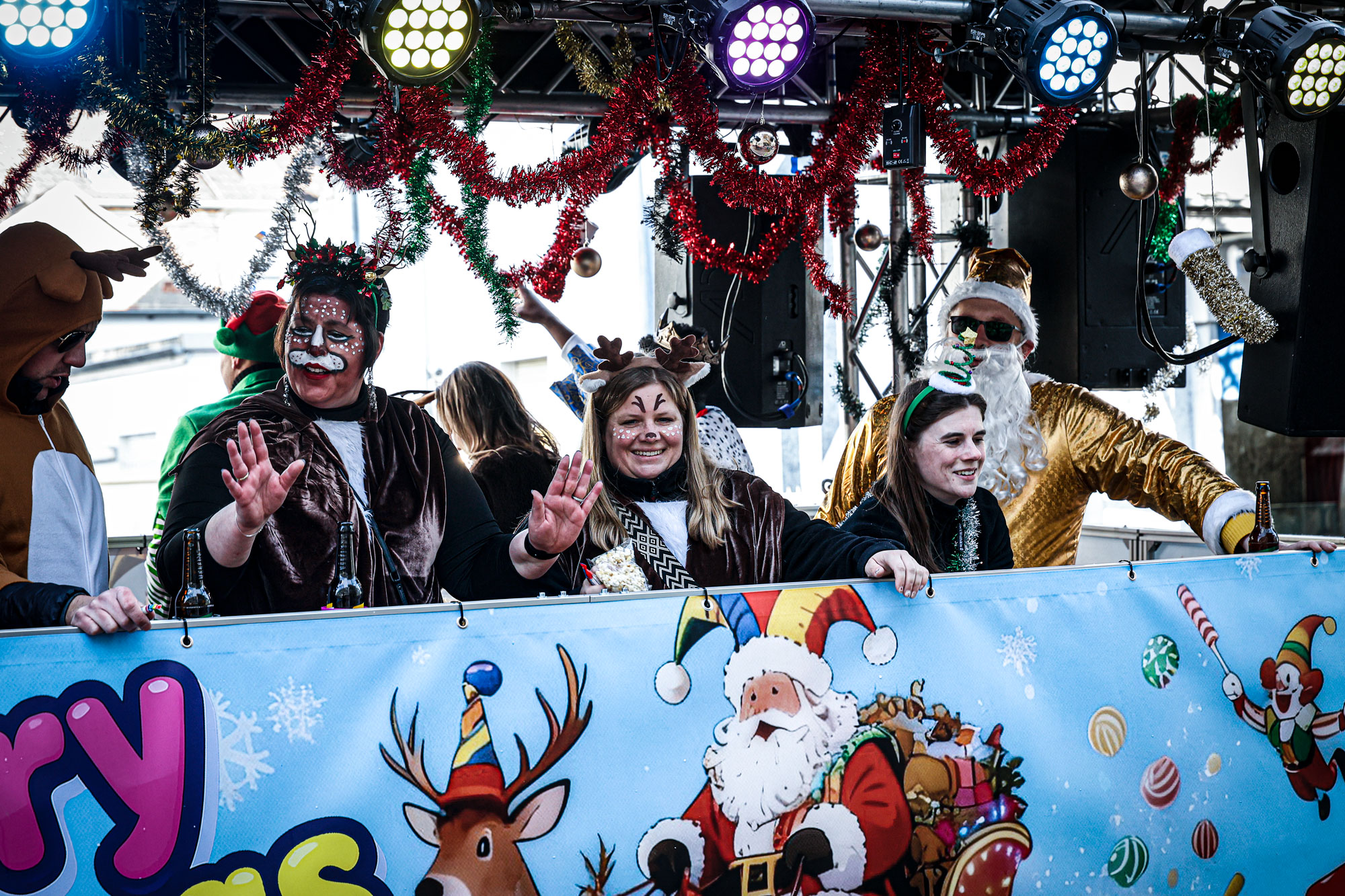 Nach dem Umzug ging es für die Feiernden wieder in das gut gefüllte Karnevalszelt, wo auch an Rosenmontag noch einmal gefeiert wird.