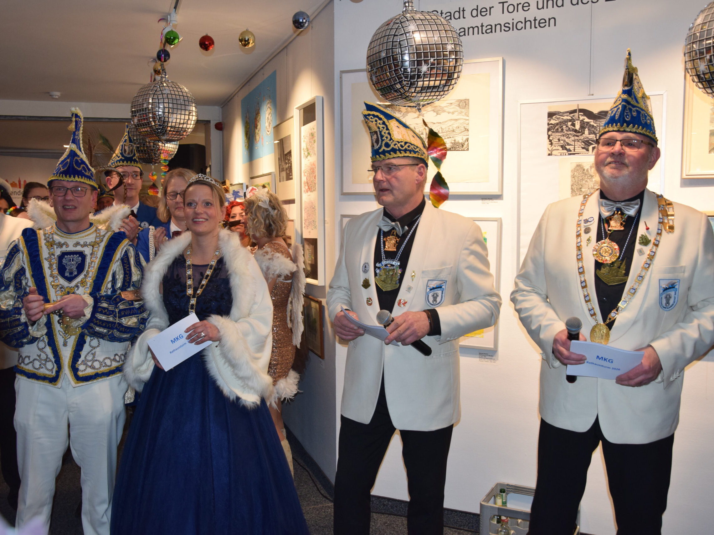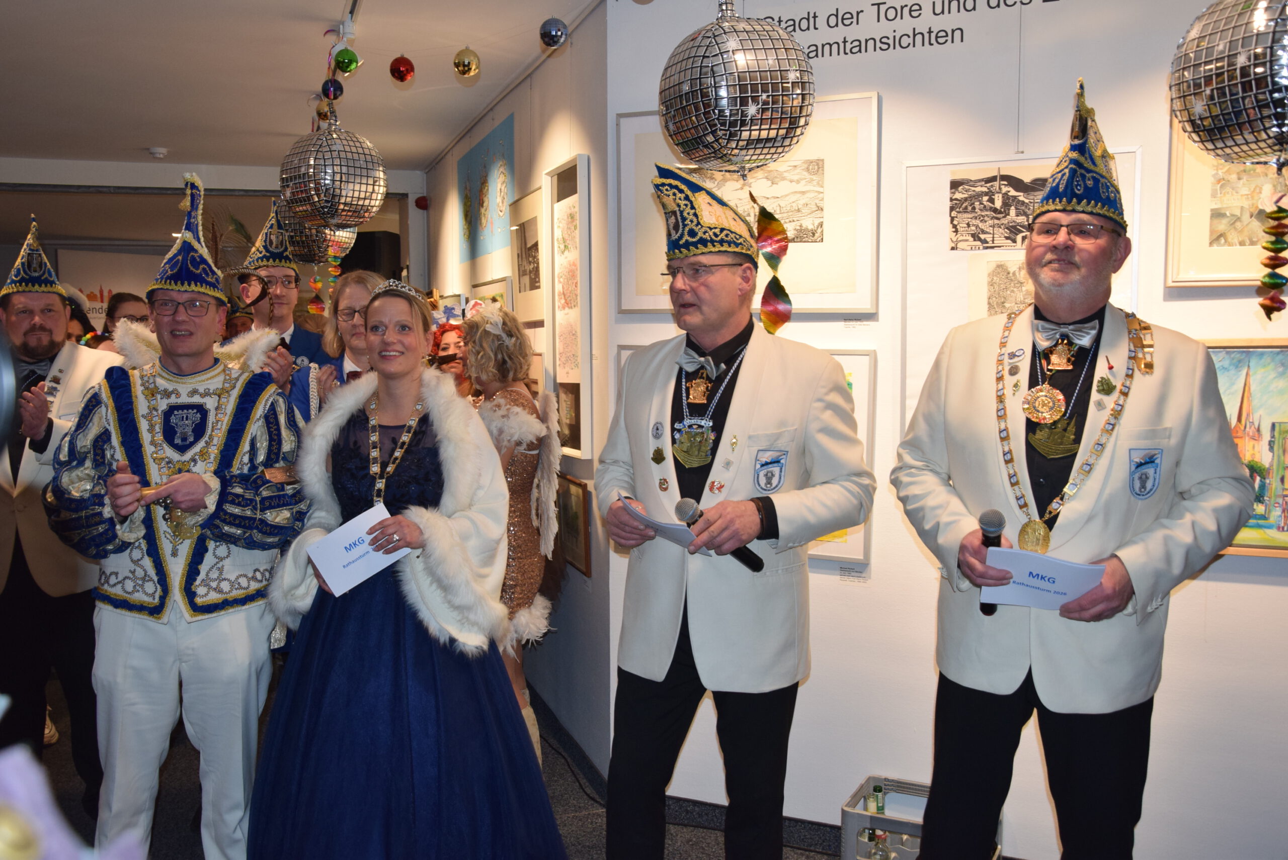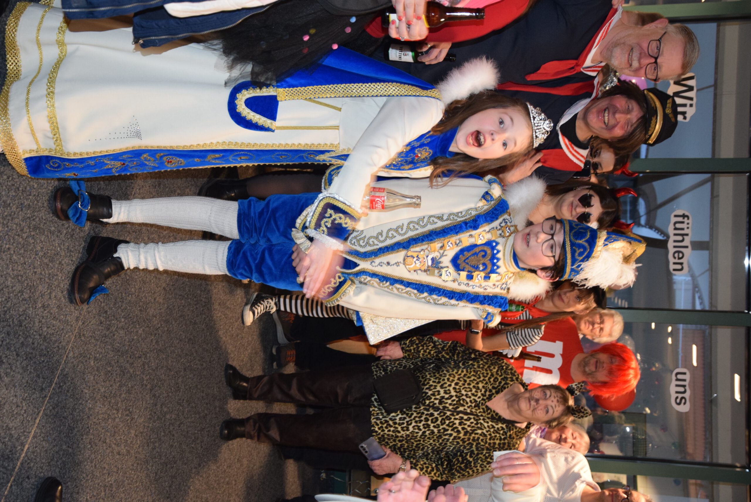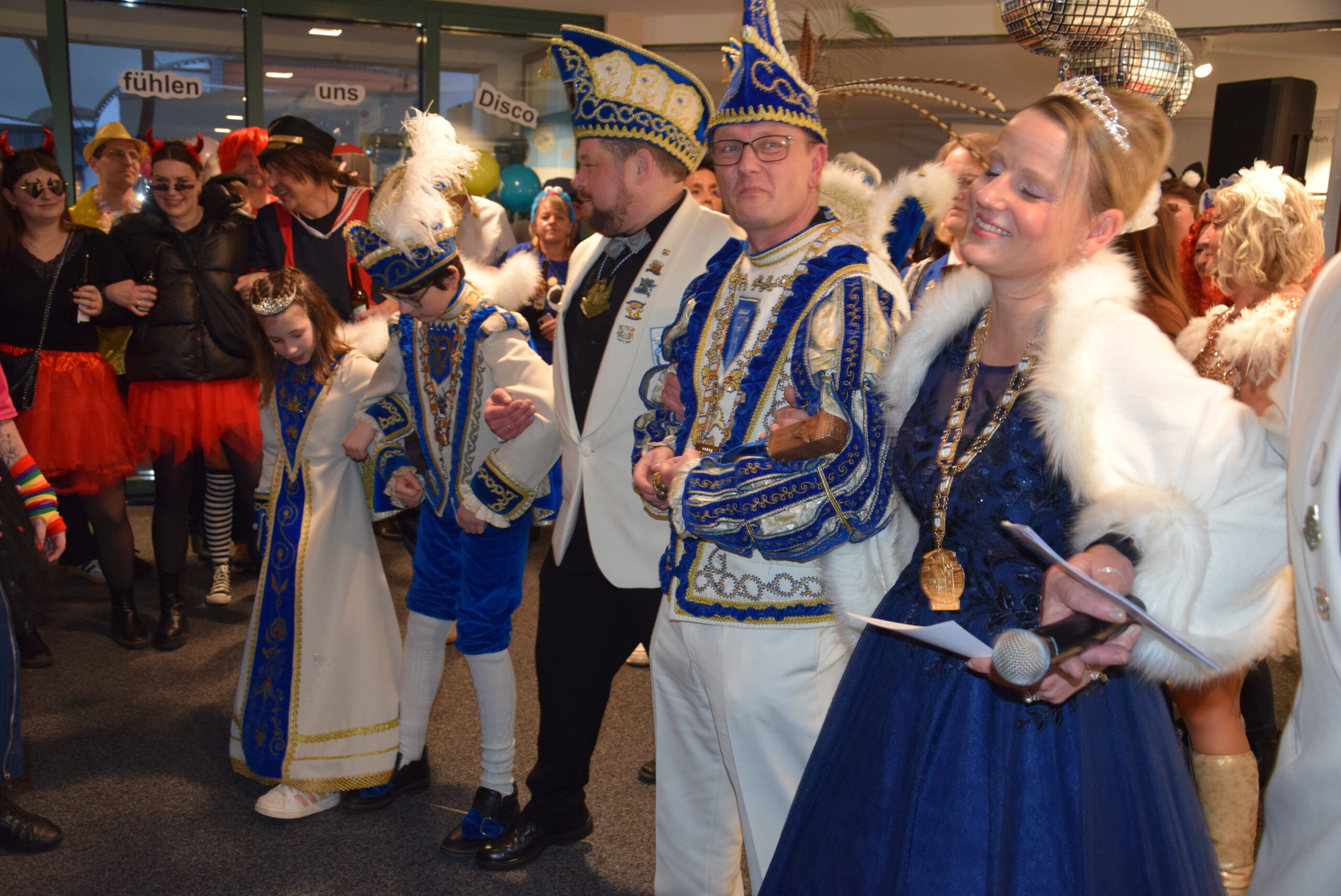 Nach dem Rathaussturm ging es zum Feiern ins Karnevalszelt am Nordwall. Mit dabei selbstverständlich das Prinzenpaar Stefan IV. Happe und Silvia II. Fritzsche, wobei die Prinzessin an Weiberfastnacht natürlich das Sagen hatte. Bunt verkleidet wurde zur Musik vom Discjockey ausgelassen gefeiert. Die Tanzgruppen der „dance energy“ sowie Akteure der MKG traten an diesem Abend ebenfalls auf.