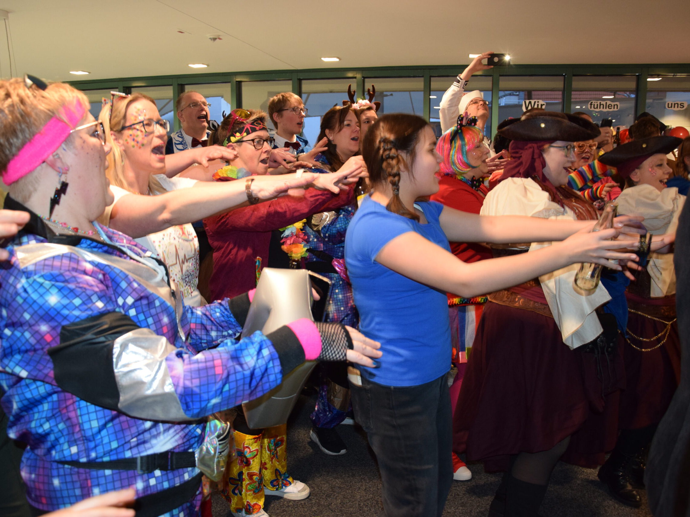 Doch am Ende saß Mendens „Dancing Queen“ im farbenfrohen Tanzoutfit mit pinker Perücke, umringt von Bodyguards, nicht am längeren Hebel. Sie schlug einen Tanzwettstreit um den Stadtschlüssel vor. Resigniert musste Schmidt allerdings feststellen, dass man zu wenig im Rathaus geübt hatte. Wettschulden sind Ehrenschulden und so rückte sie den Stadtschlüssel heraus. Jetzt, wo sie das Regiment für die kommenden Tage abgegeben hat, wird sie sich jedoch nicht in den Urlaub absetzen, sondern mittendrin mit den Mendener Karnevalisten feiern.