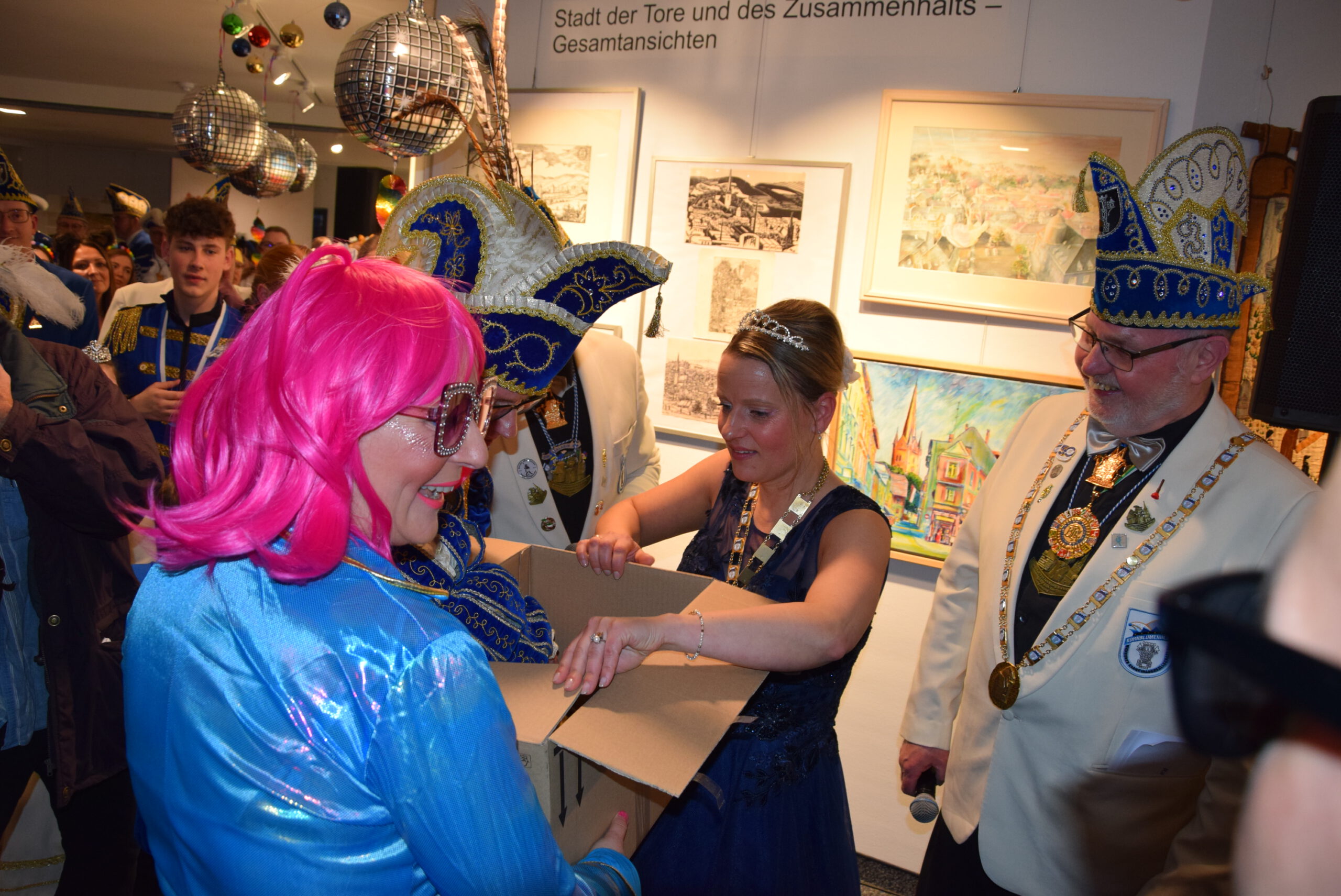Zunächst hatte Bürgermeisterin Manuela Schmidt im Vorfeld laut getönt, dass man von ihr keinesfalls den Stadtschlüssel zu erwarten habe. „Ich bin mir aber sicher, auch die erste Bürgermeisterin der Stadt muss den Stadtschlüssel abgeben“, so Ralf Hörchner, der Pressesprecher der Jecken.