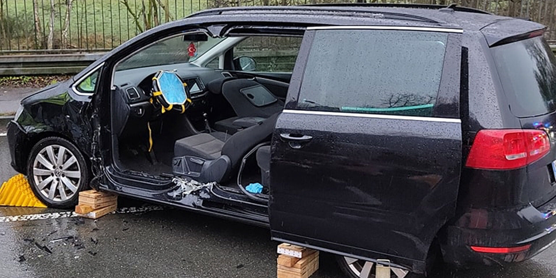 Der Fahrer des abbiegenden Autos musste von der Feuerwehr mit hydraulischem Rettungsgerät aus dem Wagen befreit werden. Anschließend wurde er verletzt ins Krankenhaus gebracht.